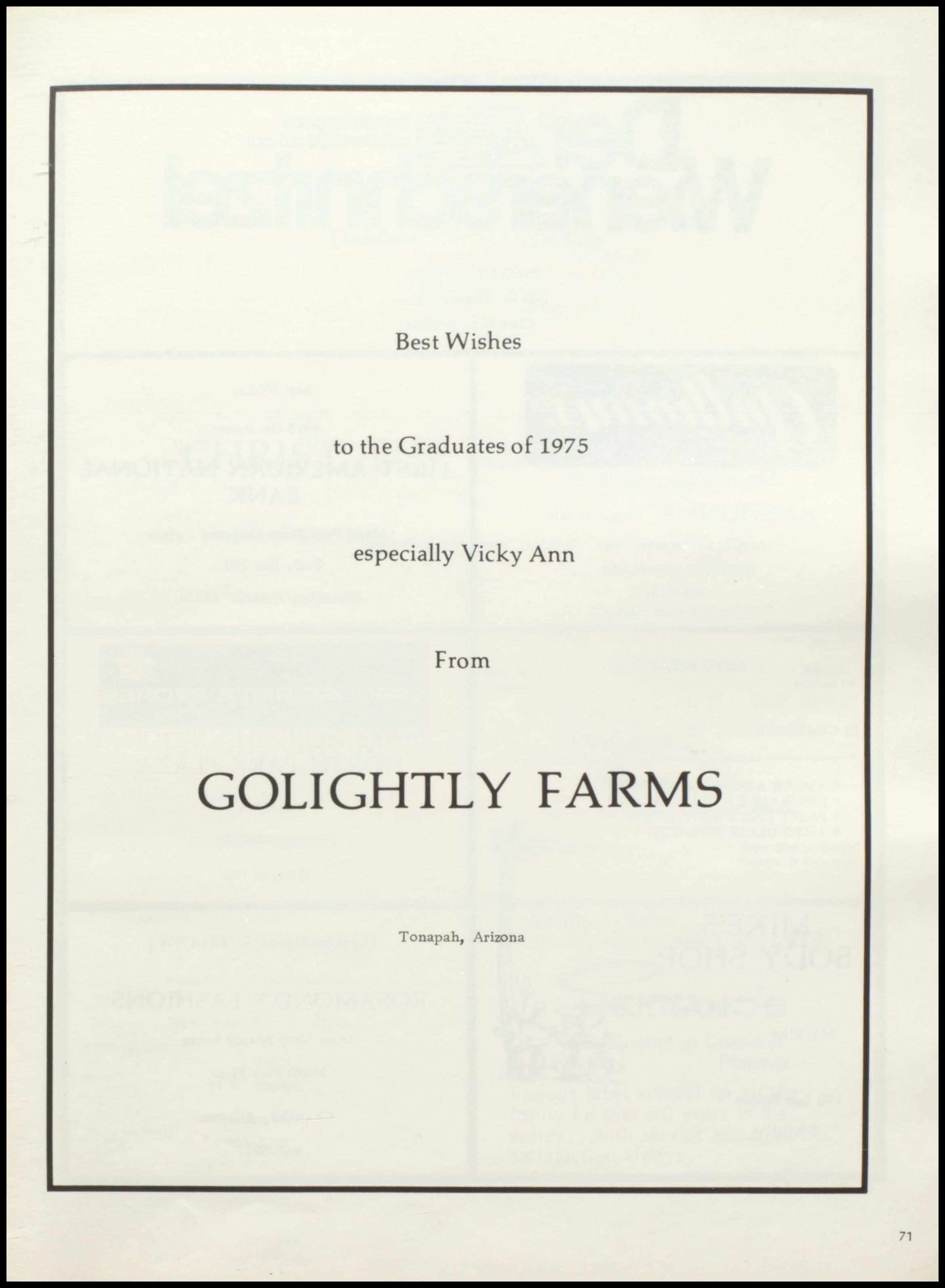 Best Wishes to the Graduates of 1975 especially Vicky Ann