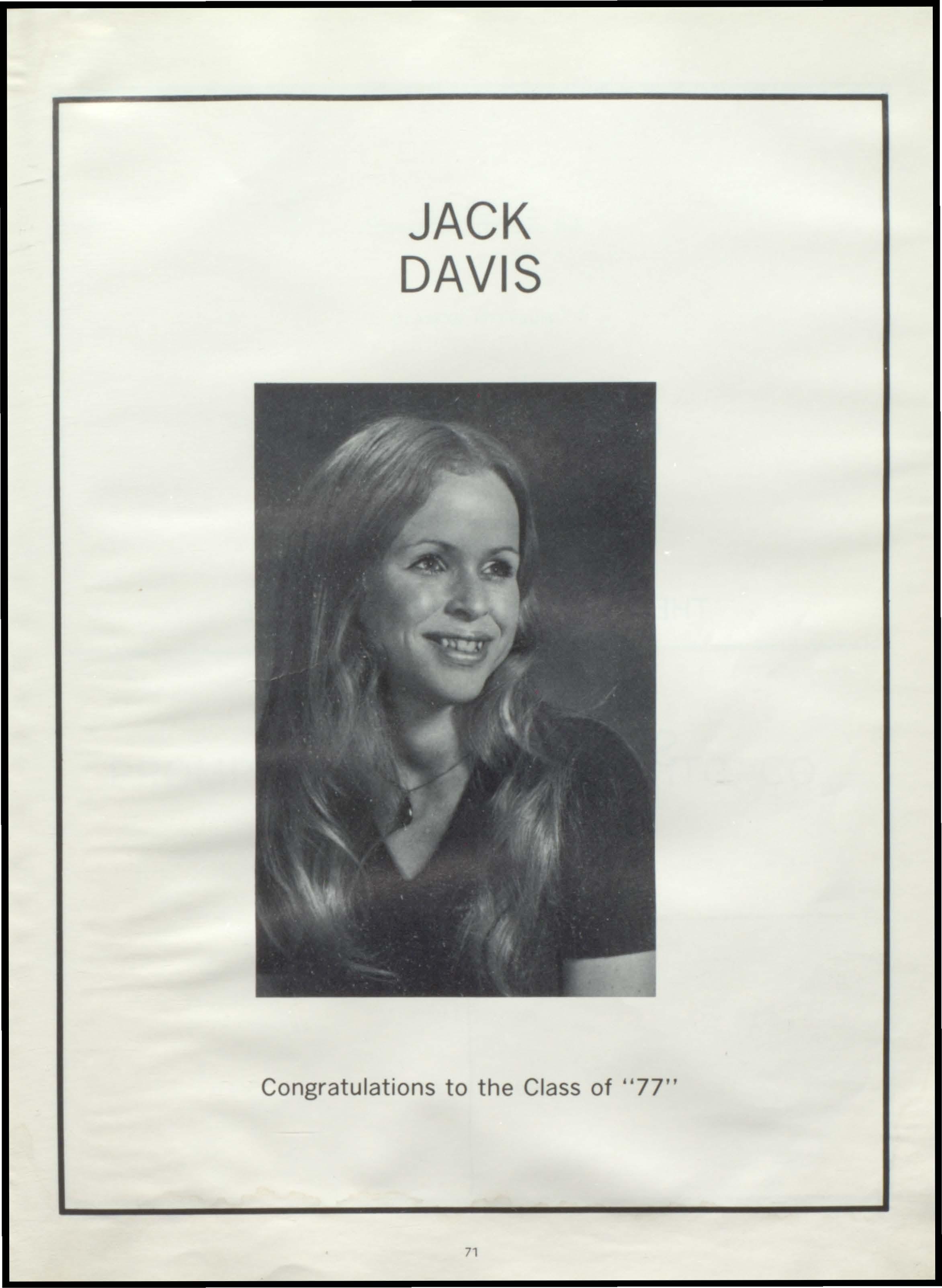CONGRATULATIONS JEFF FROM HENRY THANK GOD WE DON'T HAVE TO RIDE TO SCHOOL TOGETHER ANYMORE. WE HAD A GOOD TIME ANYWAY. THANKS TO THE CLASS OF 1977. GOOD LUCK