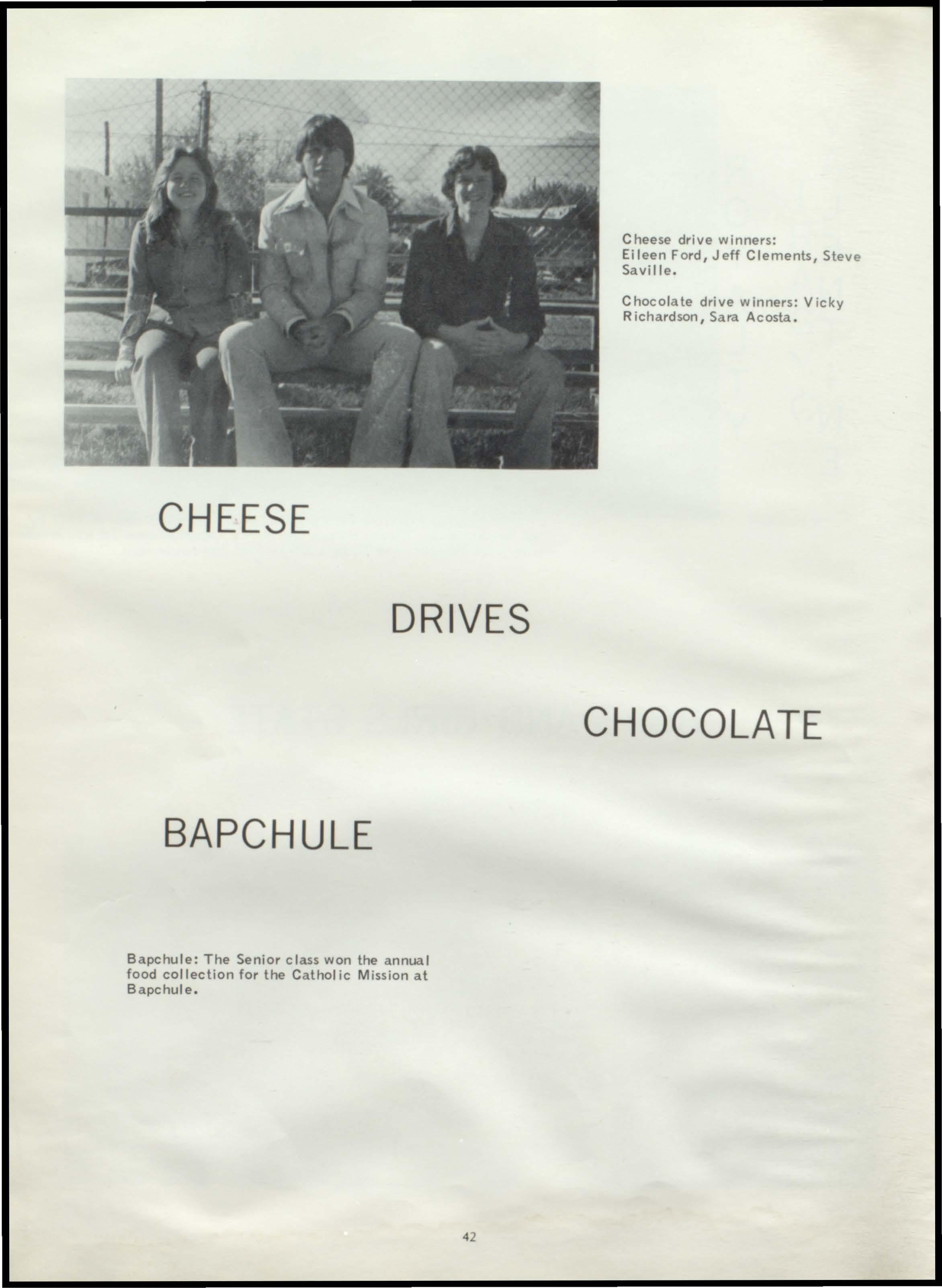 Buelna, Freddy: Student C. Rep. 1,2,3; Football 1,2,3,4; J. V. Basketbal11,2; Basketball 3,4; Baseball 1,2,3,4; Track 2,3,4; Class Treas. 3; Class Pres. 4; Batting Crown 2; Valentine runner-up 3; Homecoming King 4; Baseball M. V.P. 1; Baseball All-State 1,2,3; Football A11-State 2,3;