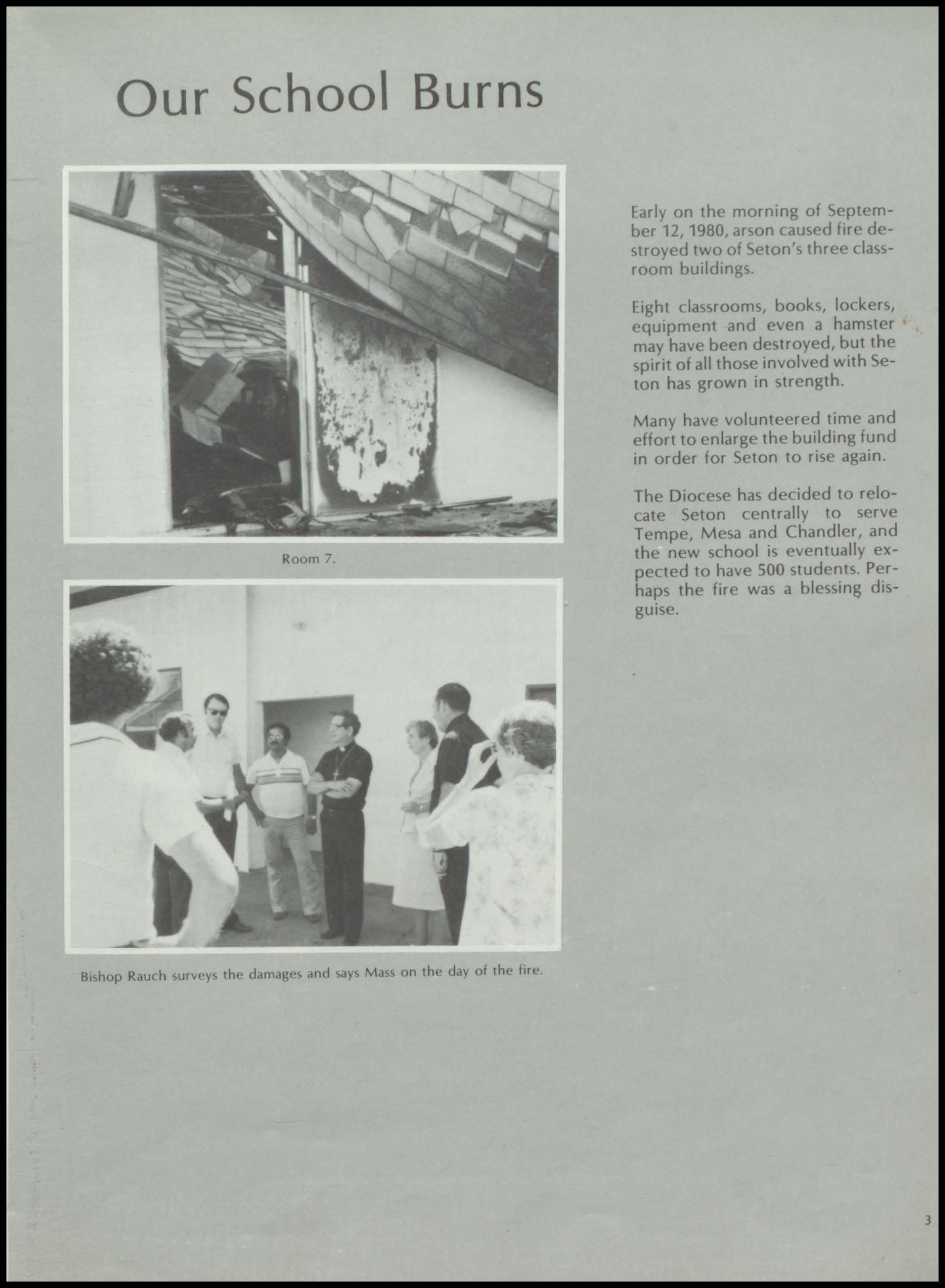 The Diocese has decided to relocate Seton centrally to serve Tempe, Mesa and Chandler, and the new school is eventually expected to have 500 students. Perhaps the fire was a blessing disguise.
