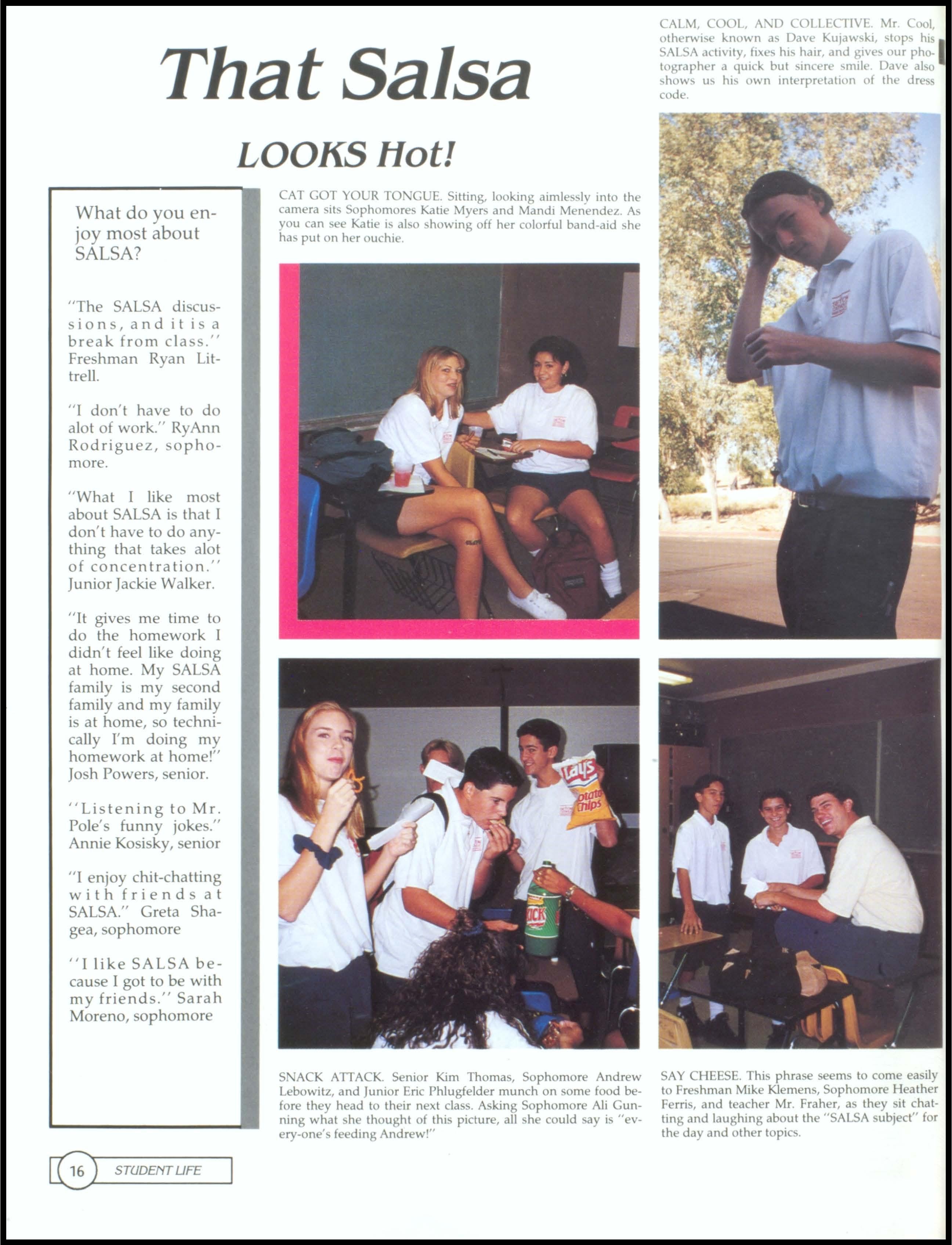 WATCH. Josh Krall watches tho e in front of h1m hopmg to get th steps down, Fre hmen Evita lsip looks like she' got it down.TASTE TESTER. Sophomore Monica Almendarez checks to s if anyon ts looking as she sneaks a hard boiled egg out of the salad bar at Fry's. Monica said, " I just wanted to make sure th y wer fresh."