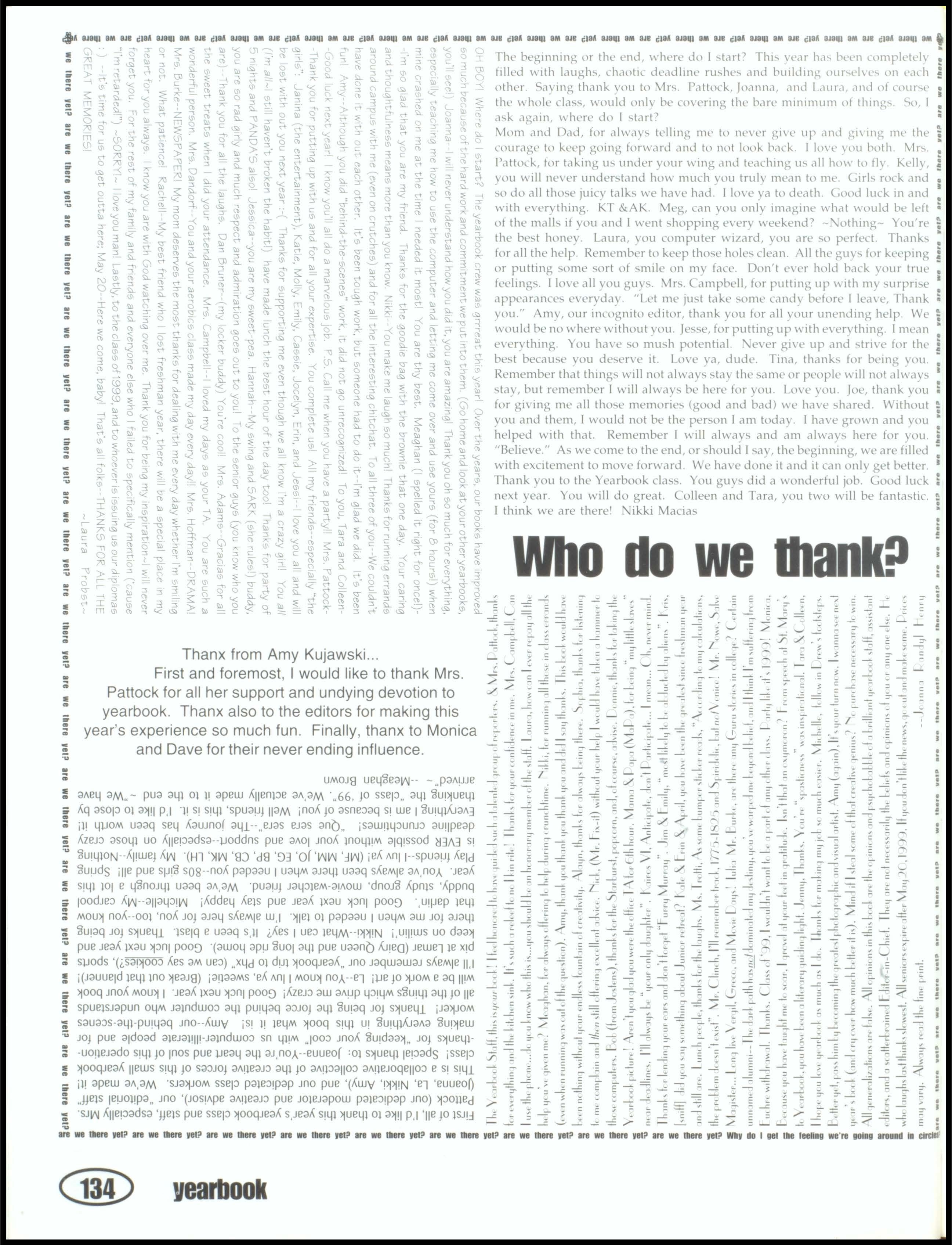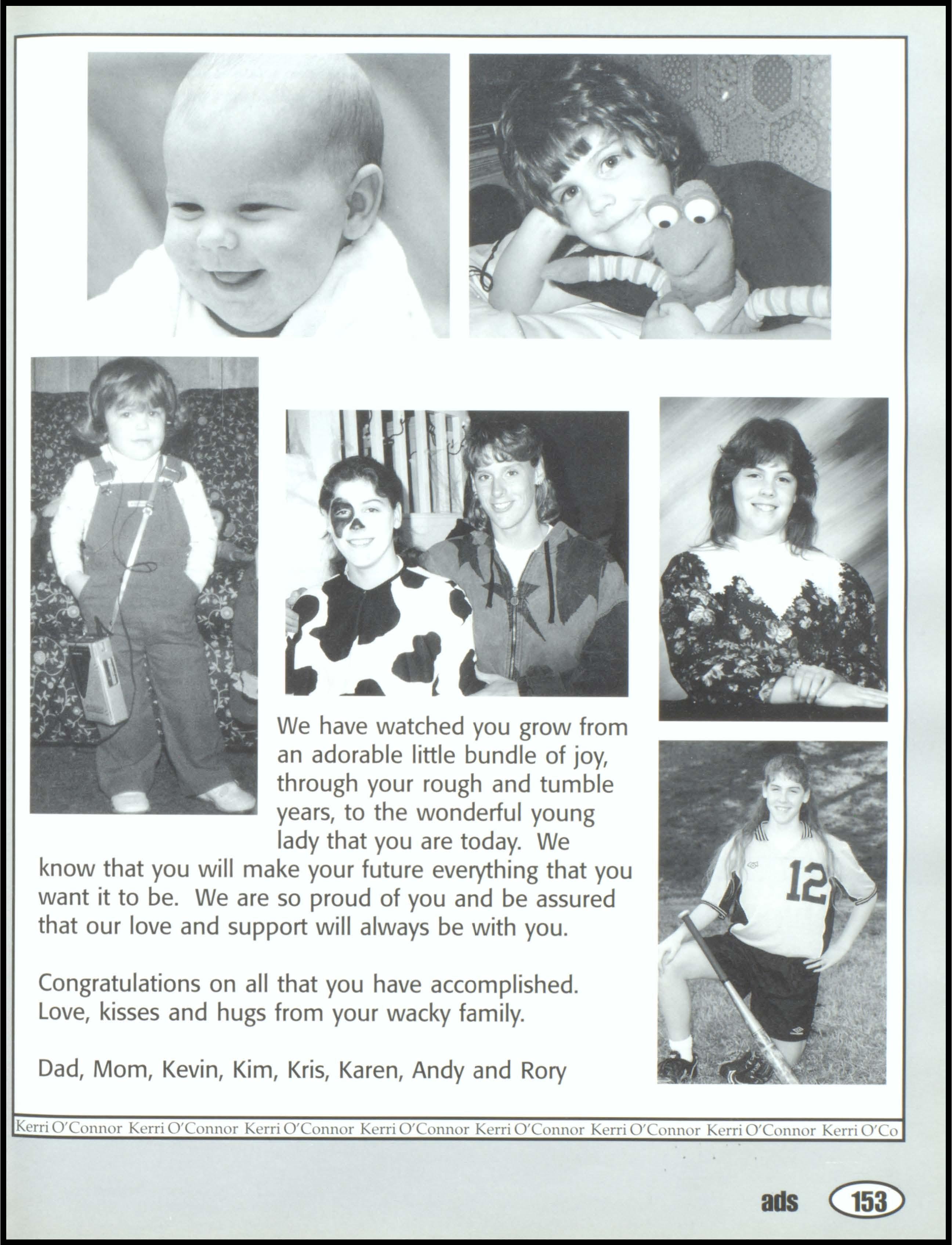 To Megan, We have watched you grow from a wide-eyed little girl to a beautiful and caring young woman. You have truly been a gift from God. You have brought so much joy to our family. You are a wonderful daughter, sister and friend. Follow your dreams and goals. Keep the strength you have in being who you are and may you always be joyful and at peace with your life. Keep your faith, your heart and your eyes on Jesus. Know that we will always be here for you. Congratulations on being a graduate of the "Class of '99".