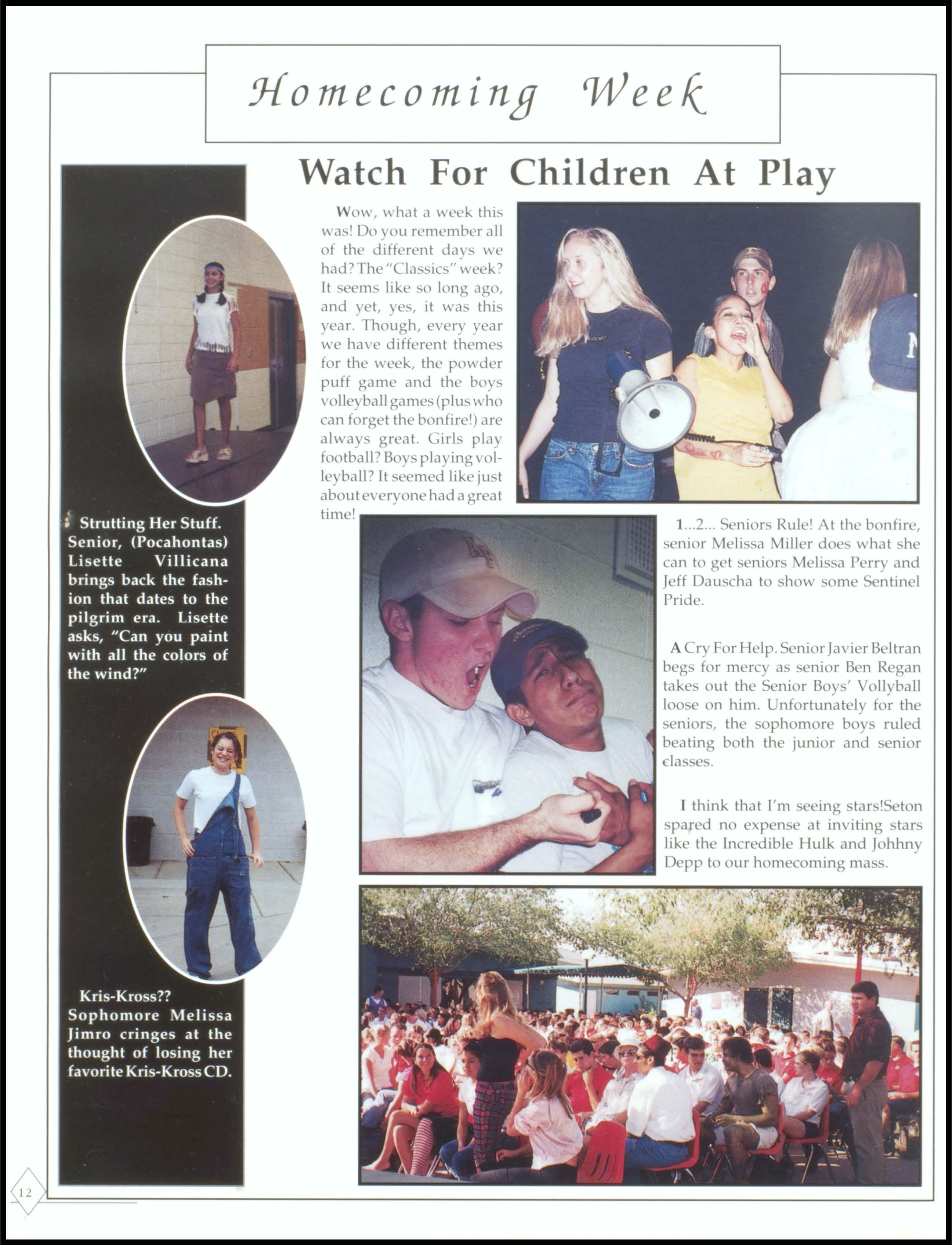 Wow, what a week this was! Do you remember all of the different days we had?The" lassics"week? It seems like so long ago, and yet, yes, it was this year. Though, every year we have different themes for the week, the powder puff game and the boys volleyball games (plus who can forget the bonfire!) are alway great. Girls play football? Boy playing volleyball? It eemed like ju t about everyone had a great time!