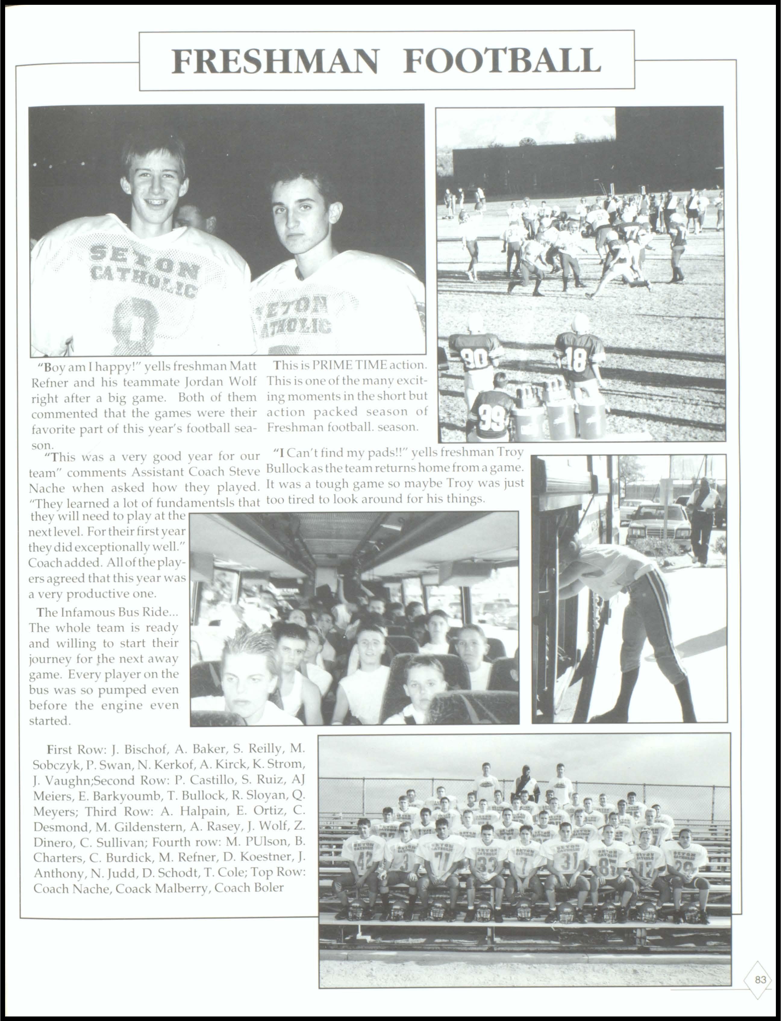 Go, Jim, Go! - Senior Melissa Miller shows her Seton pride and spirit by attending all seton sporting events. In this picture she cheers for her favorite JV football player, Jim Conner.