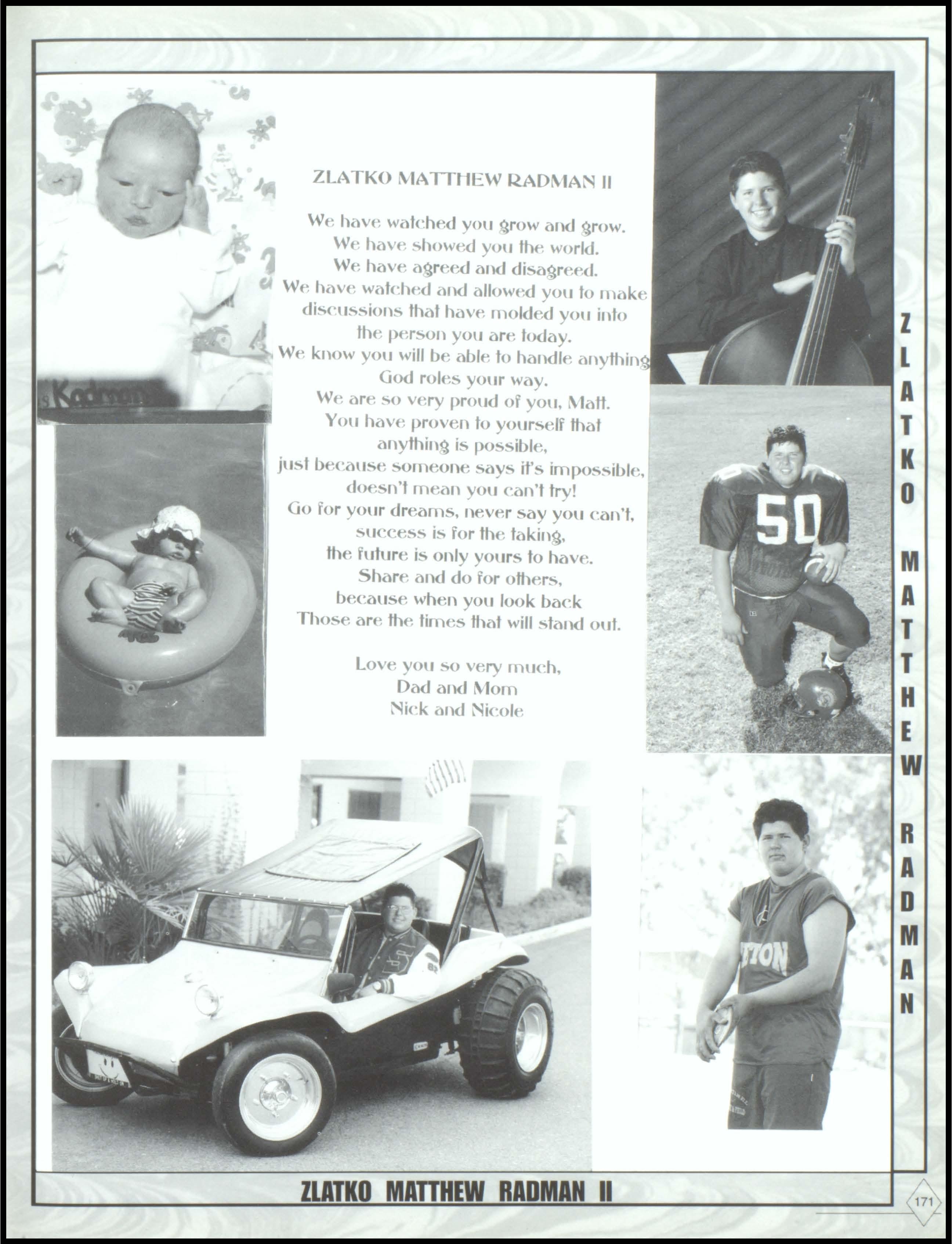 From the tiniest of beginings, we have watched you grow into the fine young man you are today. We are very proud of you and look forward to the bright future you have ahead.