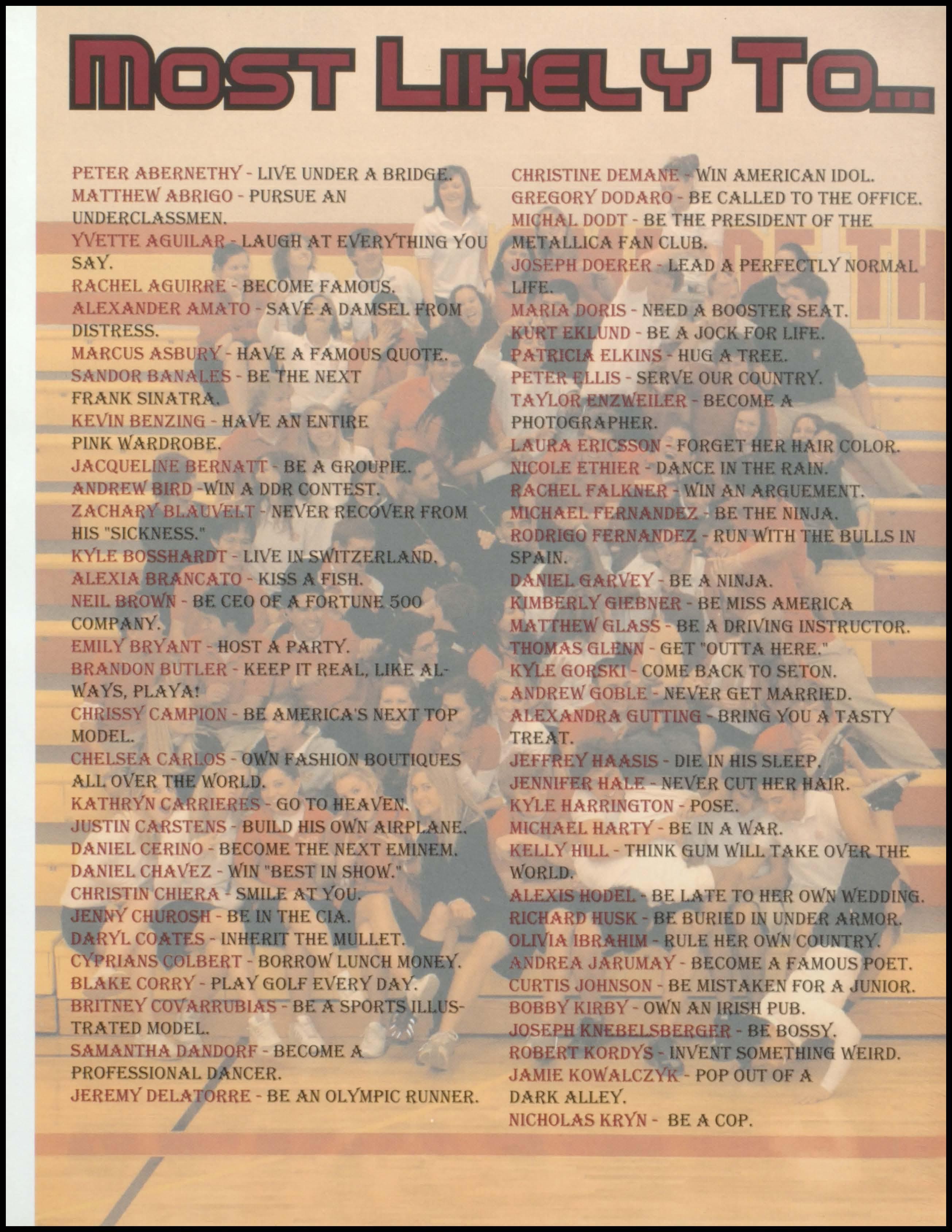 1Ytfett1er 'vou were pchop, or even c;omethlng you wou.d rJI; I \iiCed playing at the luau. Quinton .Cai\de1ana, Julian Badilla, Timothy and Brandon Freidhof, seemed to agree. Ouinton said, "The music was pretty good. ThEy just could have used a :ittlt more Overa I, a freshmen survey 5howed that over 75'X of the: Oass of '09 was pleased with •ms year<> 1uat. seiecuon'