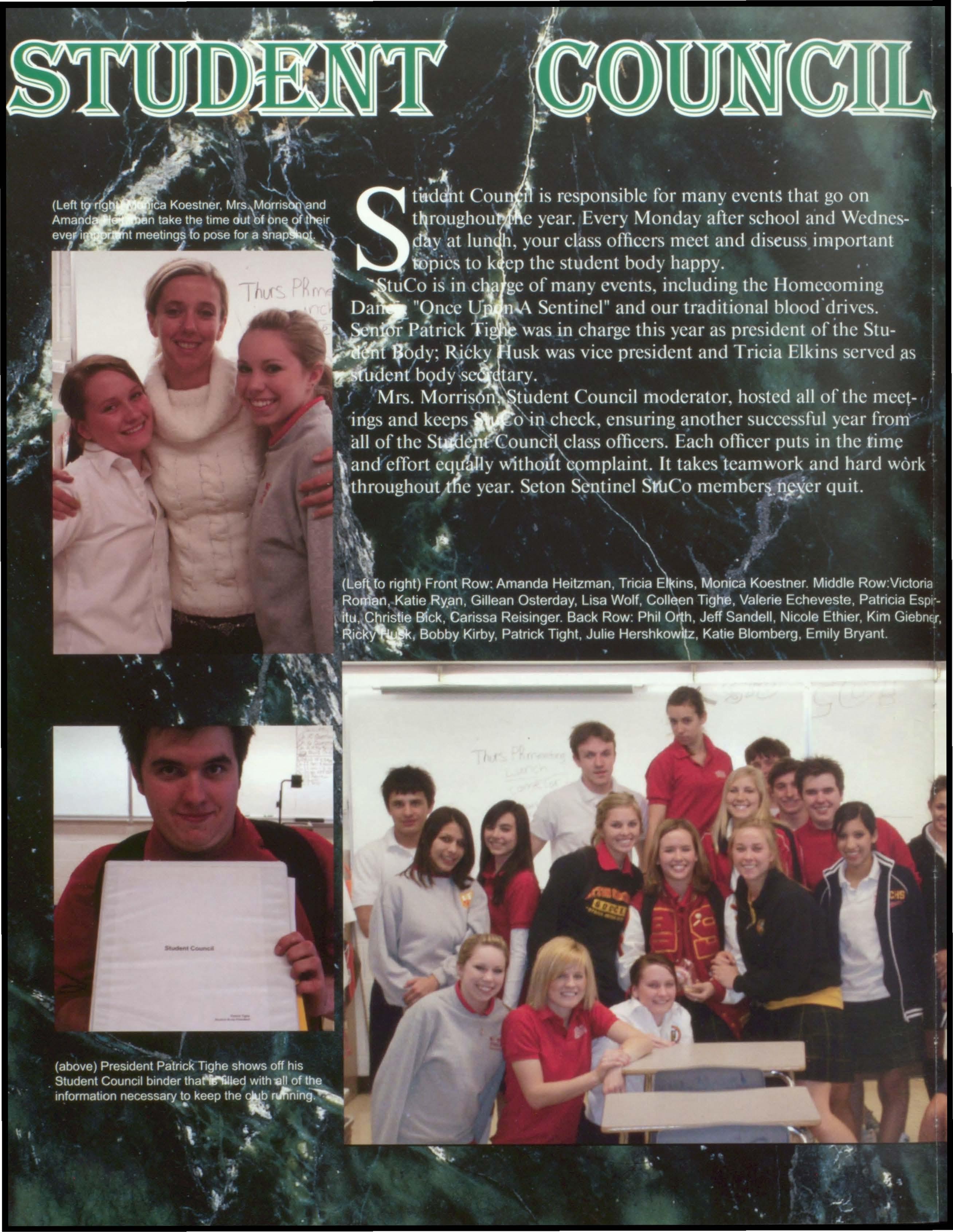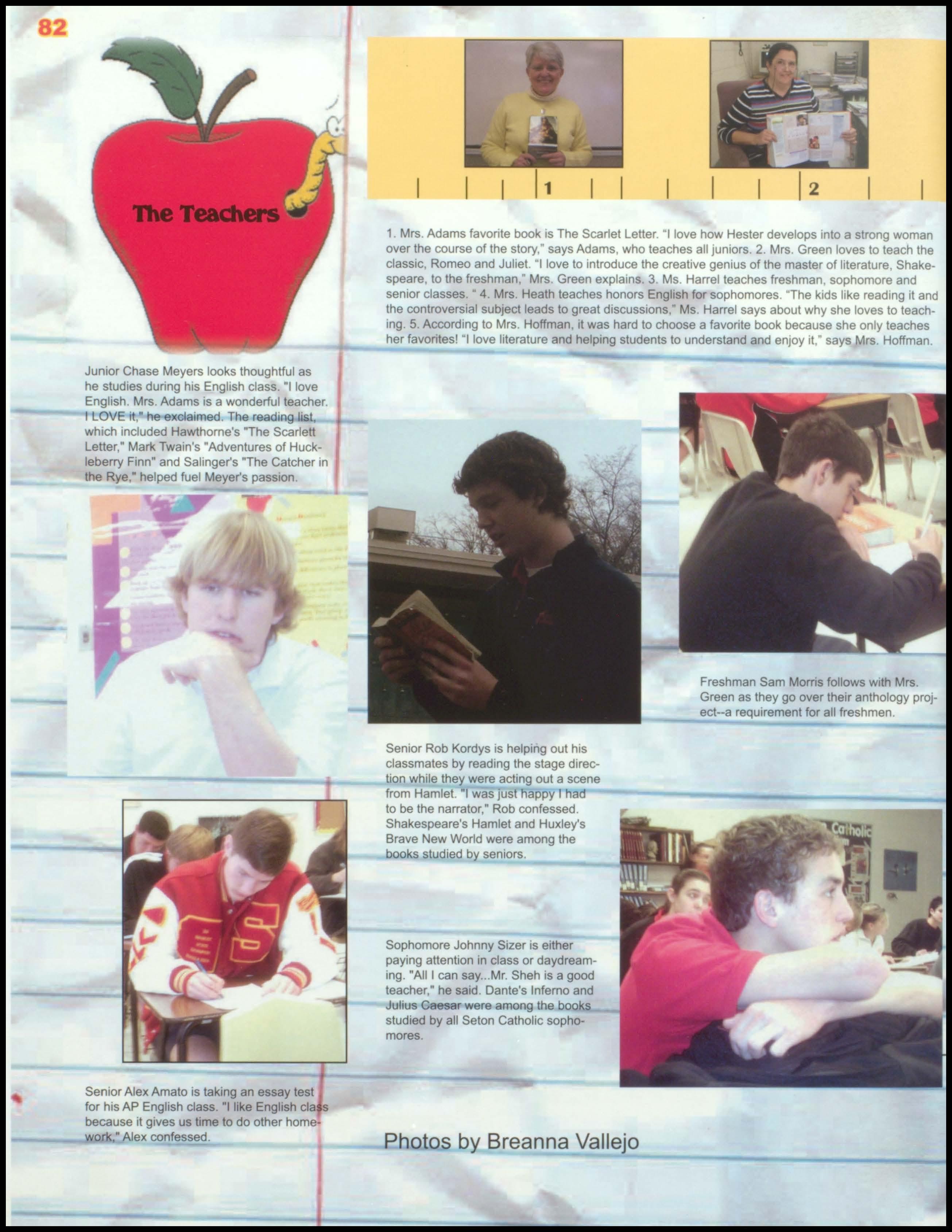 The ' cwspapcr crew v..orks hard to dell\ cr a wonderful nc\\ spa per to the students of 5eton Catholic. lhgh chool C\CI) month fhcy gather stories that Seton -;tudcnts care about and would \\ant to read by relating to C\cryday student life Working on the layouts. talking about topics. and collaborating on ideas arc the daily tasks these \Hitcrs face. The paper features a \ ariety of articles on student perspectives. eton life. scene. sport and taking" it to the quad to name just a fev• "I enJOY shanng my thoughts through my \Hiting." stated Andrea Jannnay. ndcr the leadership of editor-in-chief Jacque Bematt. managmg editor ndrea Jarumay and city editor hannon LeBlanc--and guidance from their teacher. "vir. heh--the nC\\ spa per trivcs to be the best cton
