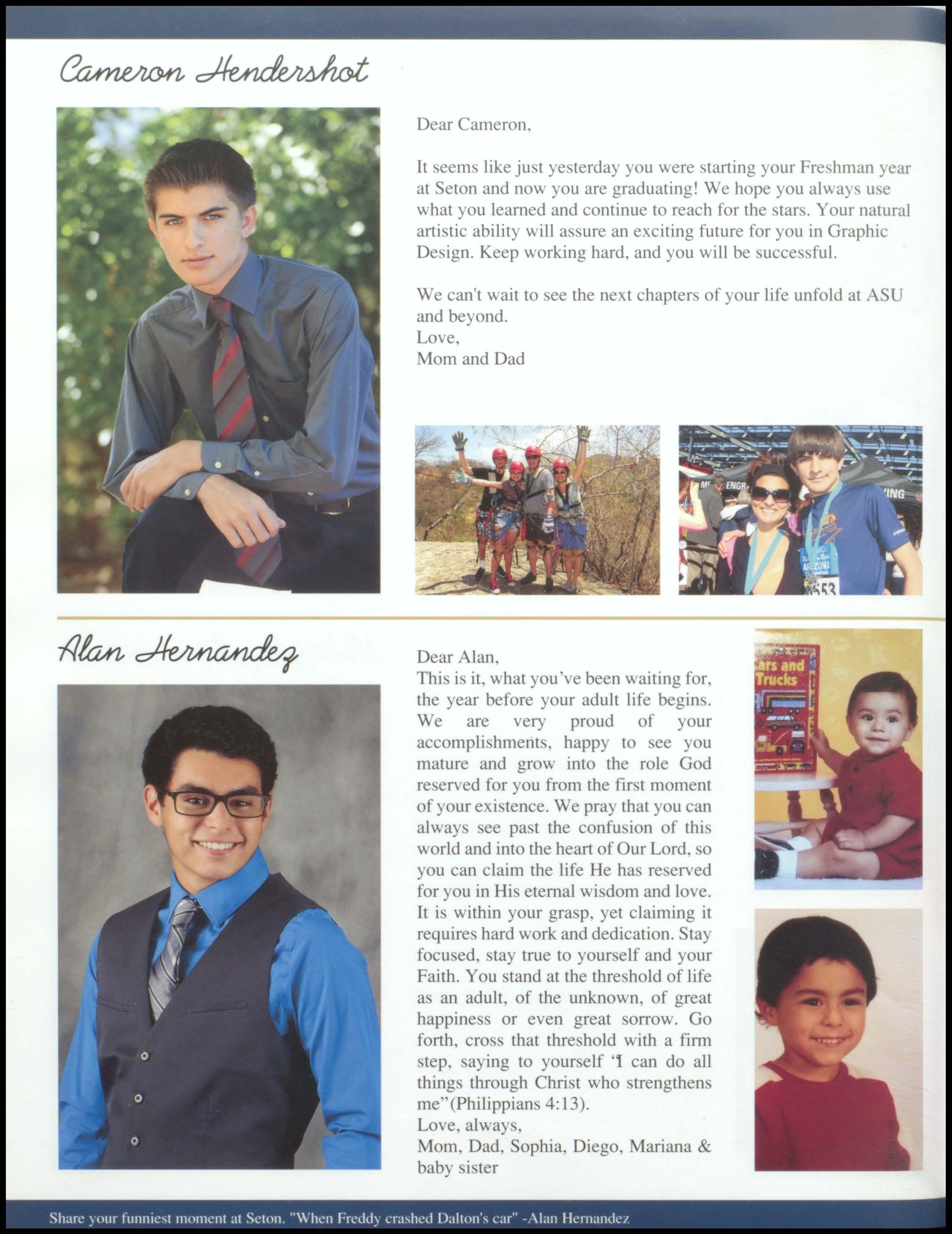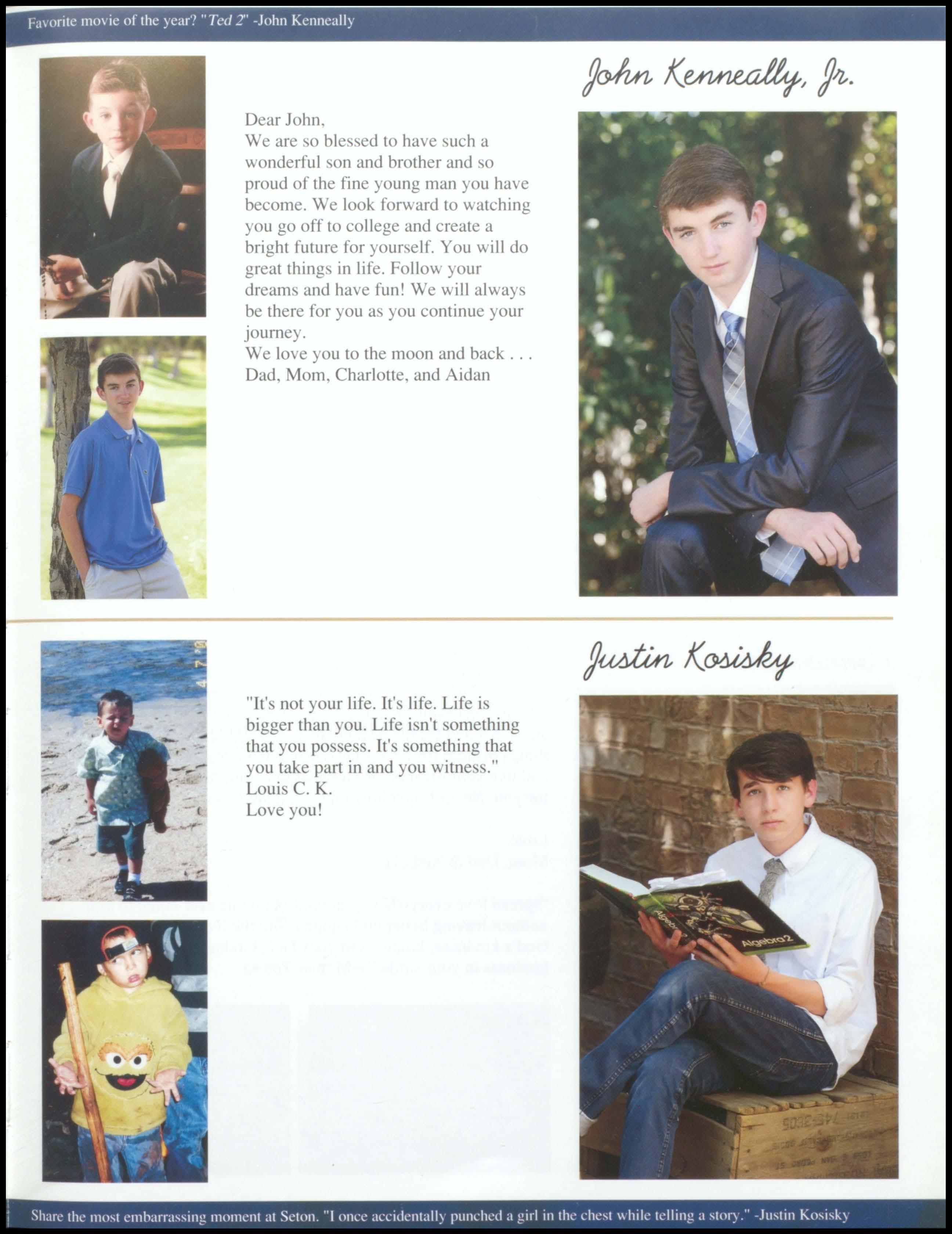 We are extremely proud of you and what you have accompli hed! Seton has changed you in , o many wonderfu I ways, including adding another family to your life. You have brought o much happine into our live . and we have enjoyed watching you grow up into the amazing young man you are today. We wish you all our best and will be there with you every tep of the way!