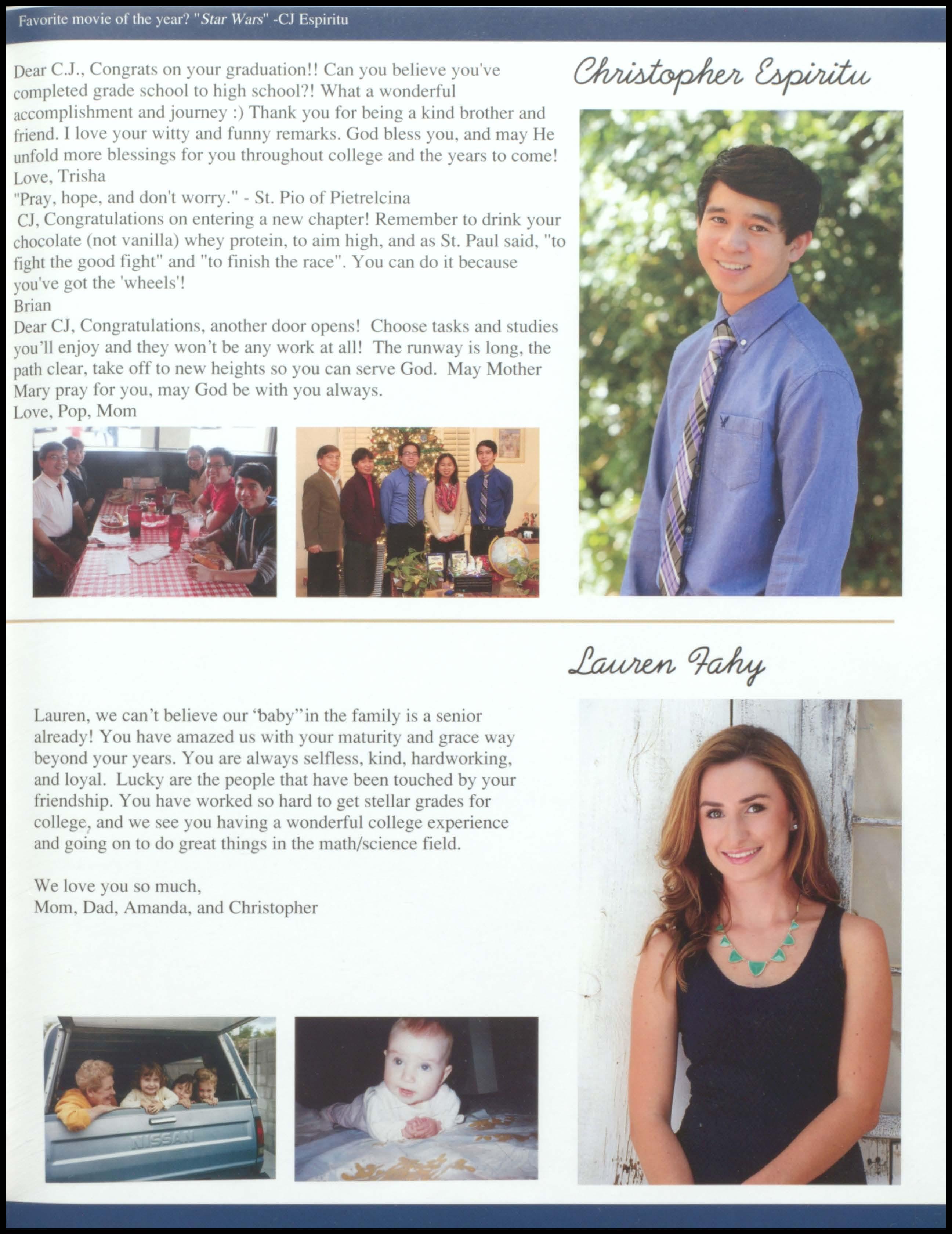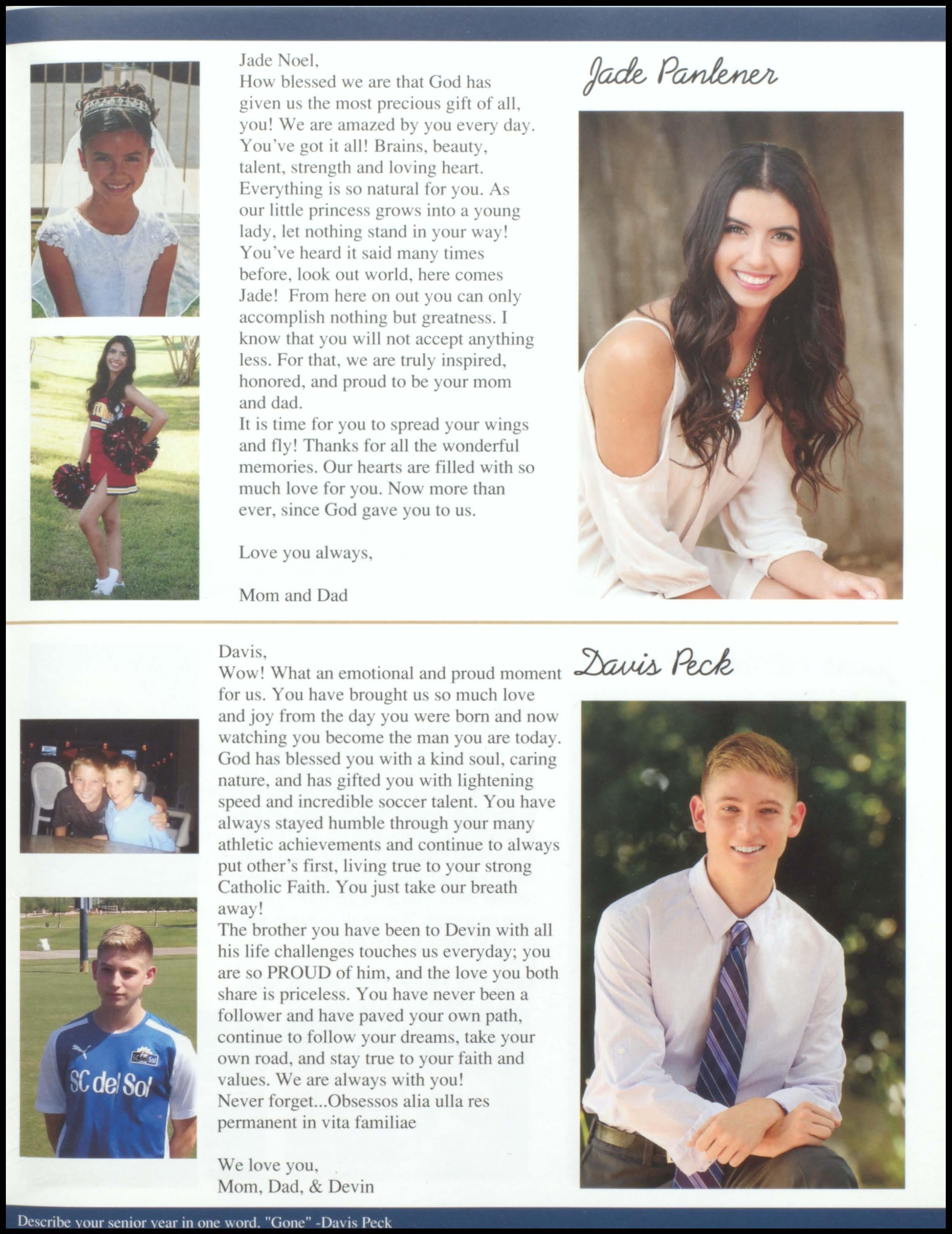 You have been a ble ing to u from the minute we fir t laid eye on you the day you \\ere born, and have filled our hearts with pride and joy ever . ince. You are the be t on a mom and dad could ever a k for. You complete our family. E\en though the year have gone by too fa t, tho e year have molded you into an amazing and re pon ible young man, who accompli hes anything he et out to do. We know with your academic drive, out tanding character and your faith in G d, your future will be bright. s we look forward with pride in eeing you achieve your goals in college and beyond, remember no mat r where you go in life, our love will follow.