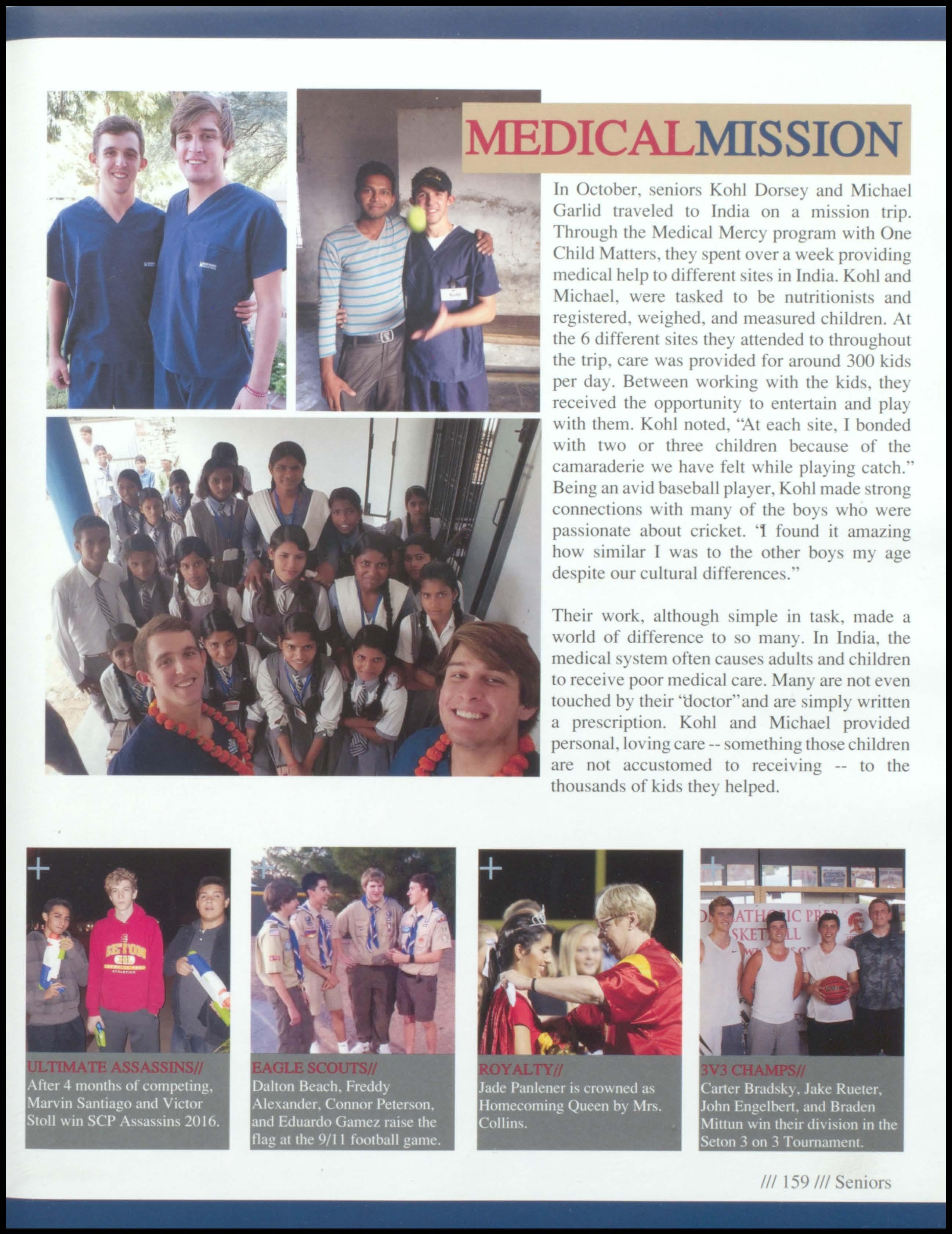 • What will )OU miss most about Seton? "My classmates." -Lucas YanConant