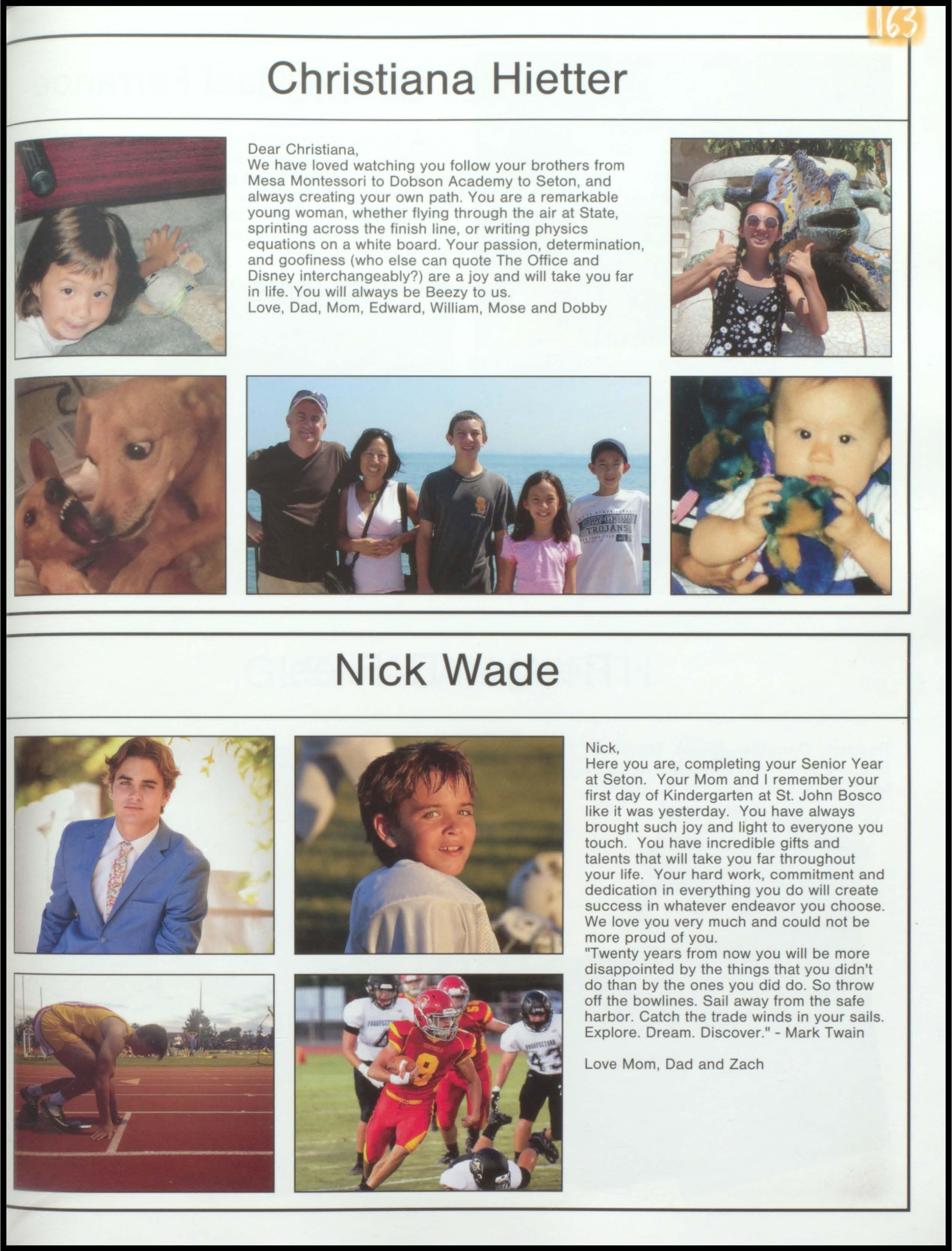 To Tom Pham, I leave the yearbook and all of our shenanigans Also, the coffee I still owe you.