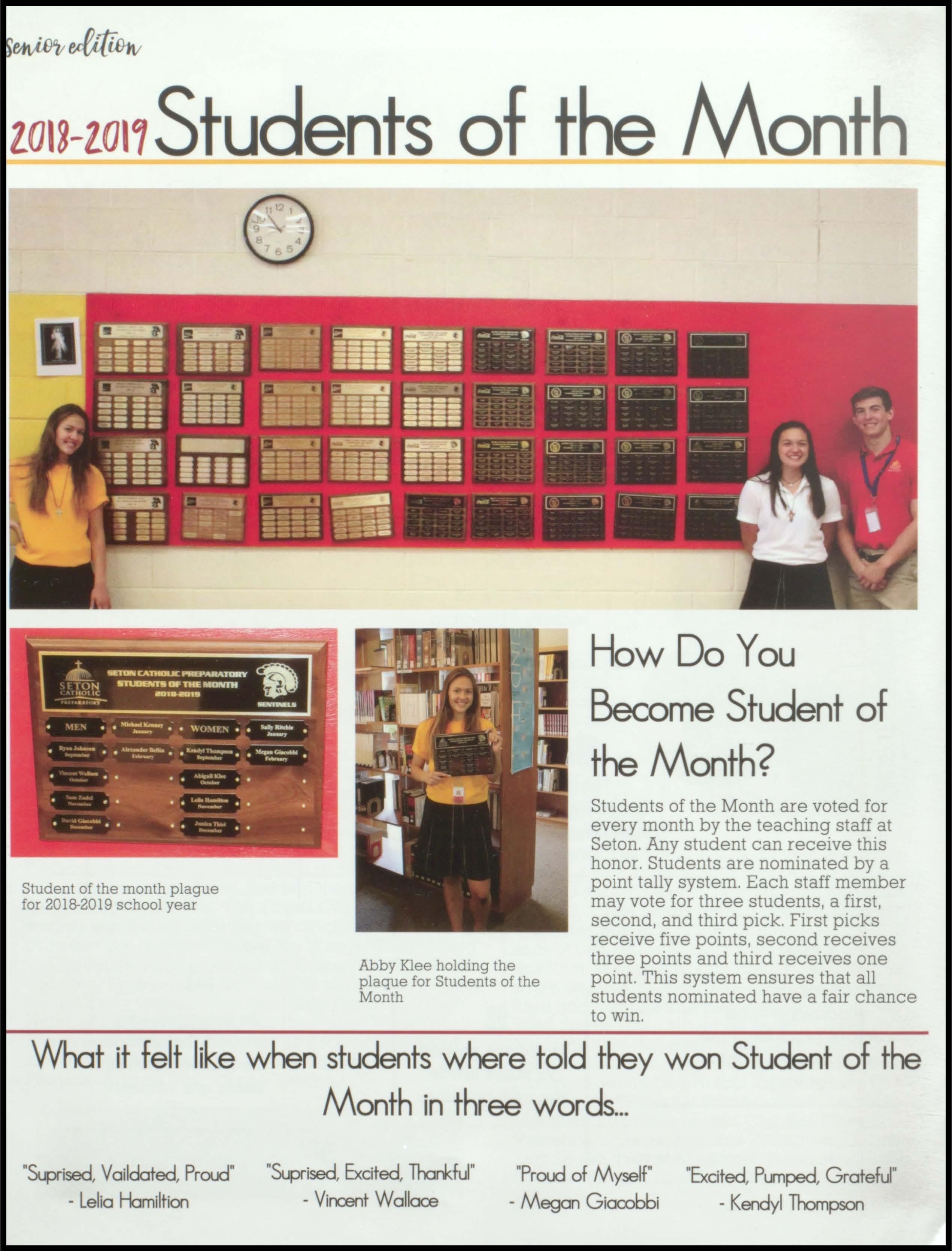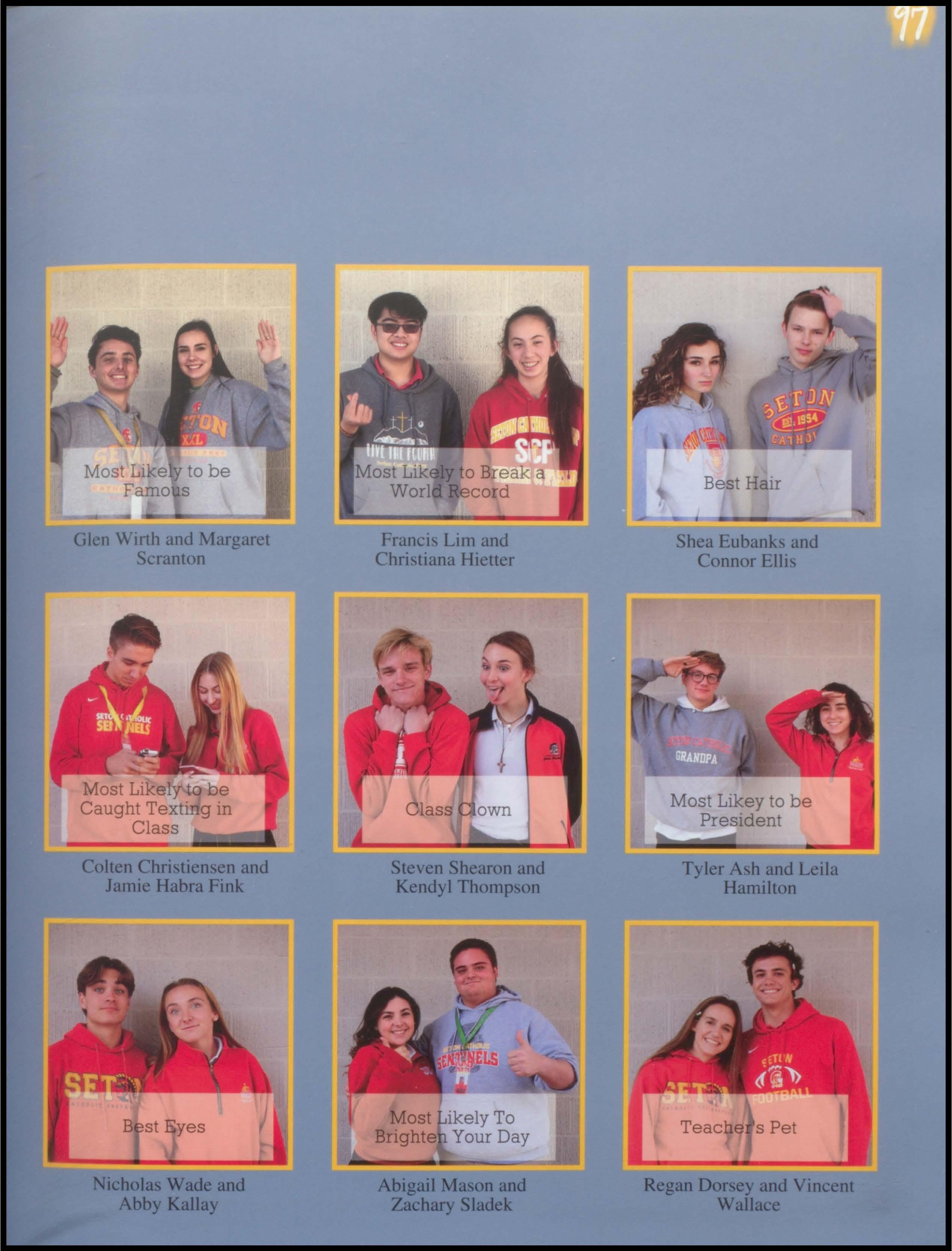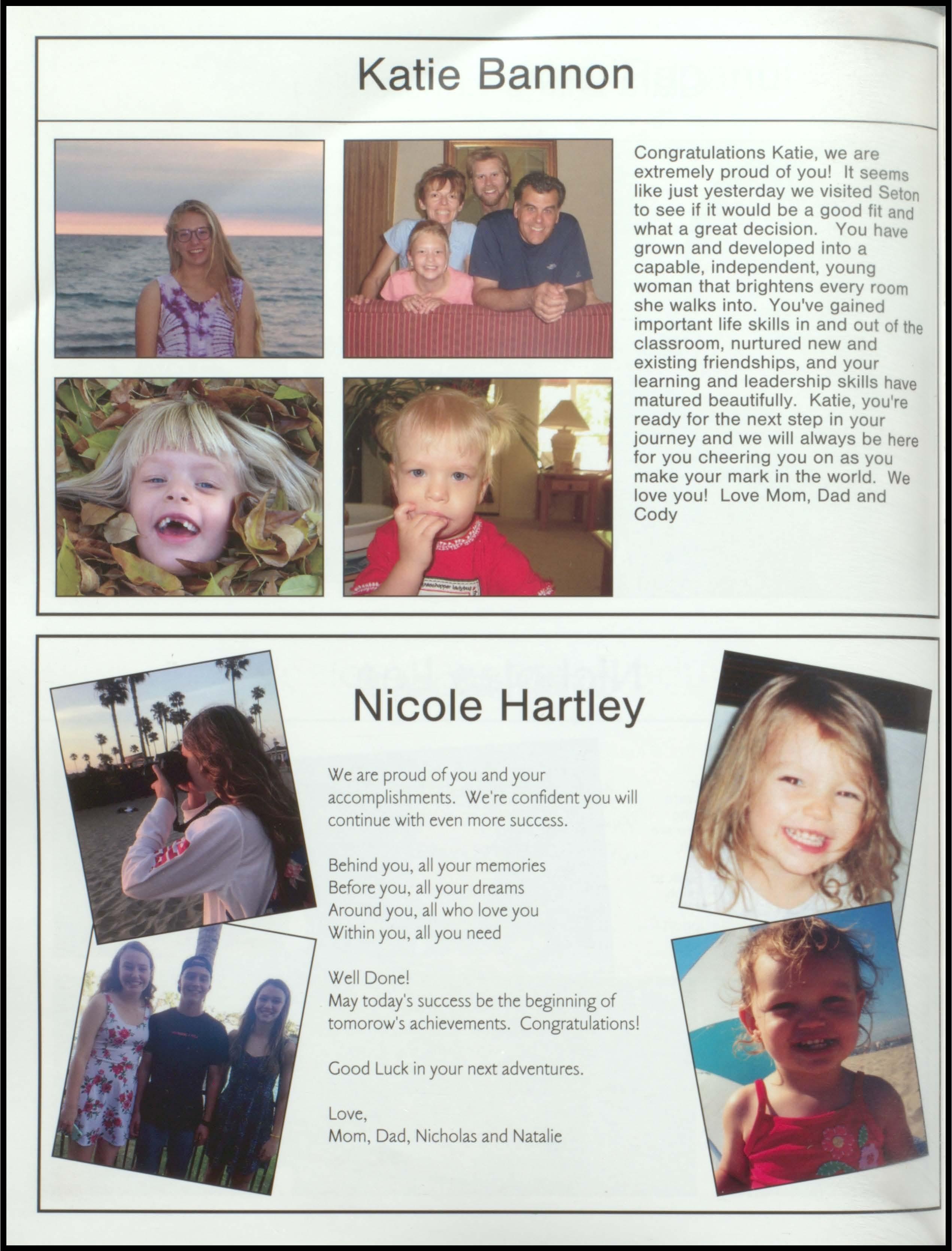 I leave my love of learning and helpmg others to all the students of Seton. Remember to always love without regret.