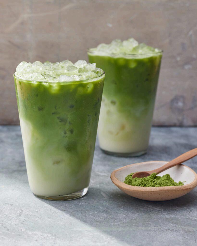 “Trà thái xanh, tăc, đường, thạch rau câu”