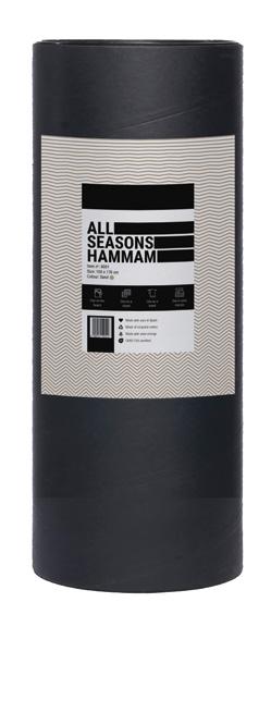 Stylish (sand) All seasons Hammam towel packed in a matt black tube. The cloth is light, fast-drying, easy to carry and multifunctional. Take it to the beach, for a picnic or decorate your home or yourself with it. It is made of 80% recycled cotton and 20% polyester. Produced in Spain. OEKO-TEX certified (no harmful dyes or substances harmful to the environment are used during the production process).