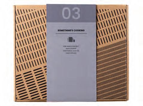 3-Piece cooking box with 3 rPET tubes. The letterbox gift pack includes Himalayan salt, black pepper and traditional olive oil.