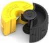 Bright coloured caps and flow meters for enhanced visibility
