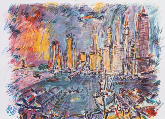 Some awesome donations of art have come in, and we can’t wait to share them with TMC in the not-too-distant future. Paul Gold and Greer Warren have continued to be the Healing Art Program’s secret patrons, with Gold finding amazing works of art for TMC. In the past months they have donated another large William Lesch photograph, an Audrey Flack vanitas print and two cityscapes: a Larry Dinkin serigraph and a Wayne Ensrud lithograph. Additionally, Maurice and Shirley Sevigny donated a large Barbara Rogers painting from the 1990s.
