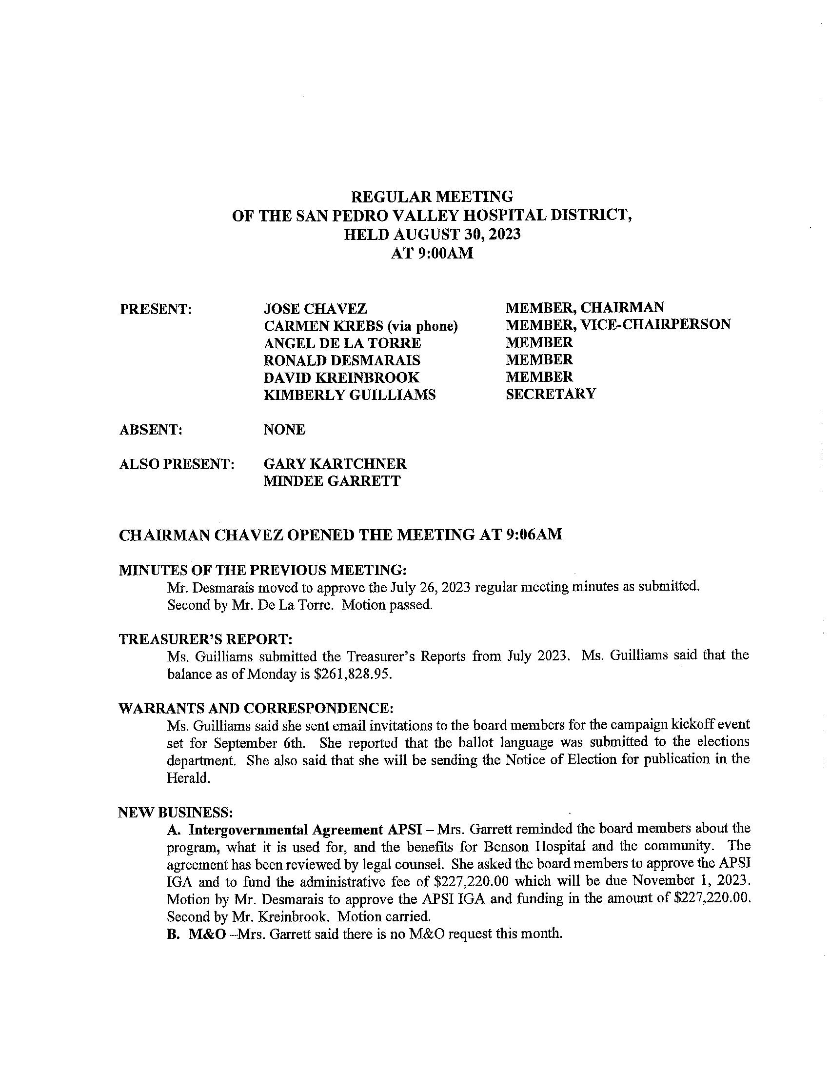 2023-08-30 SPVHD minutes by Tucson Medical Center - Issuu