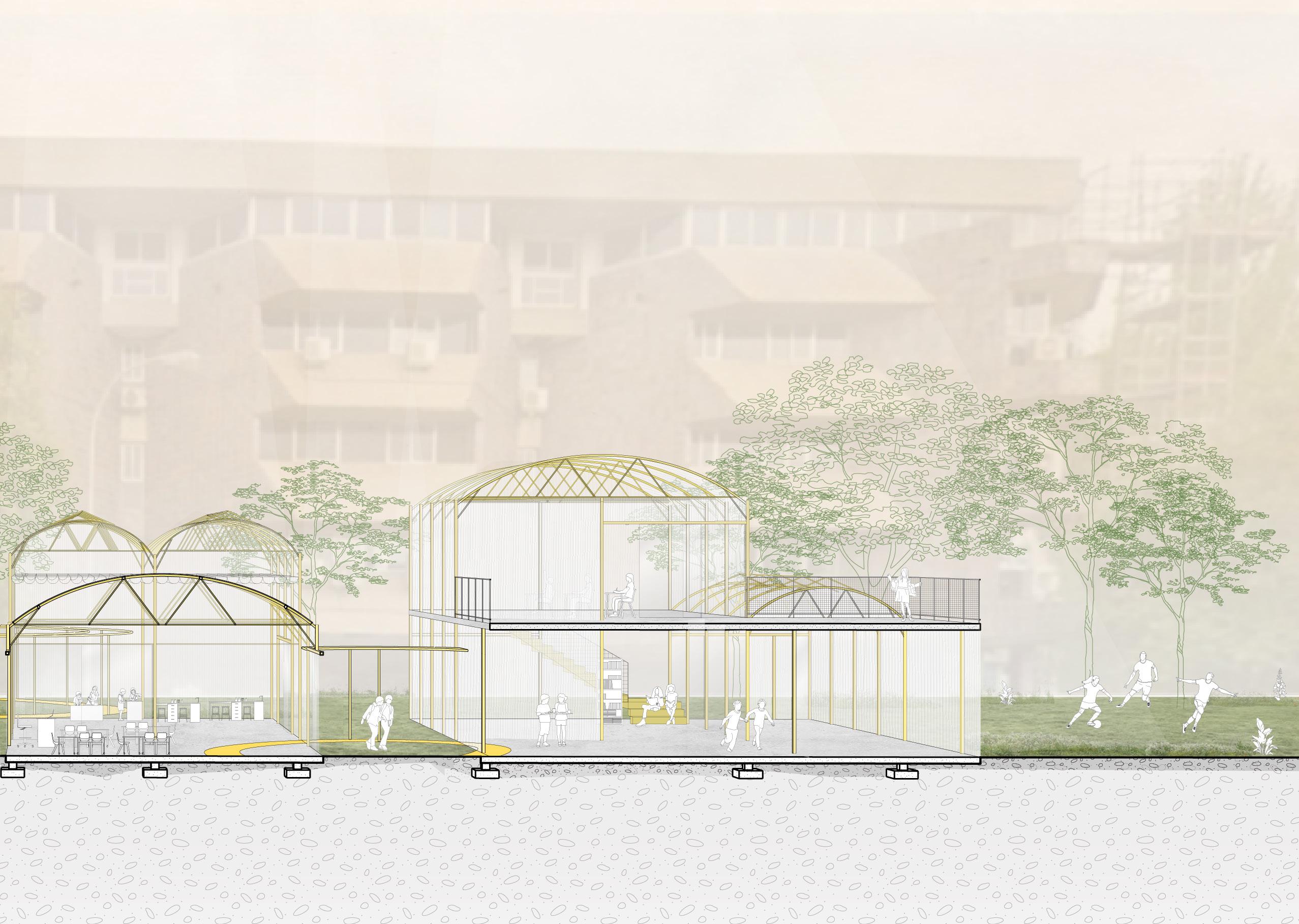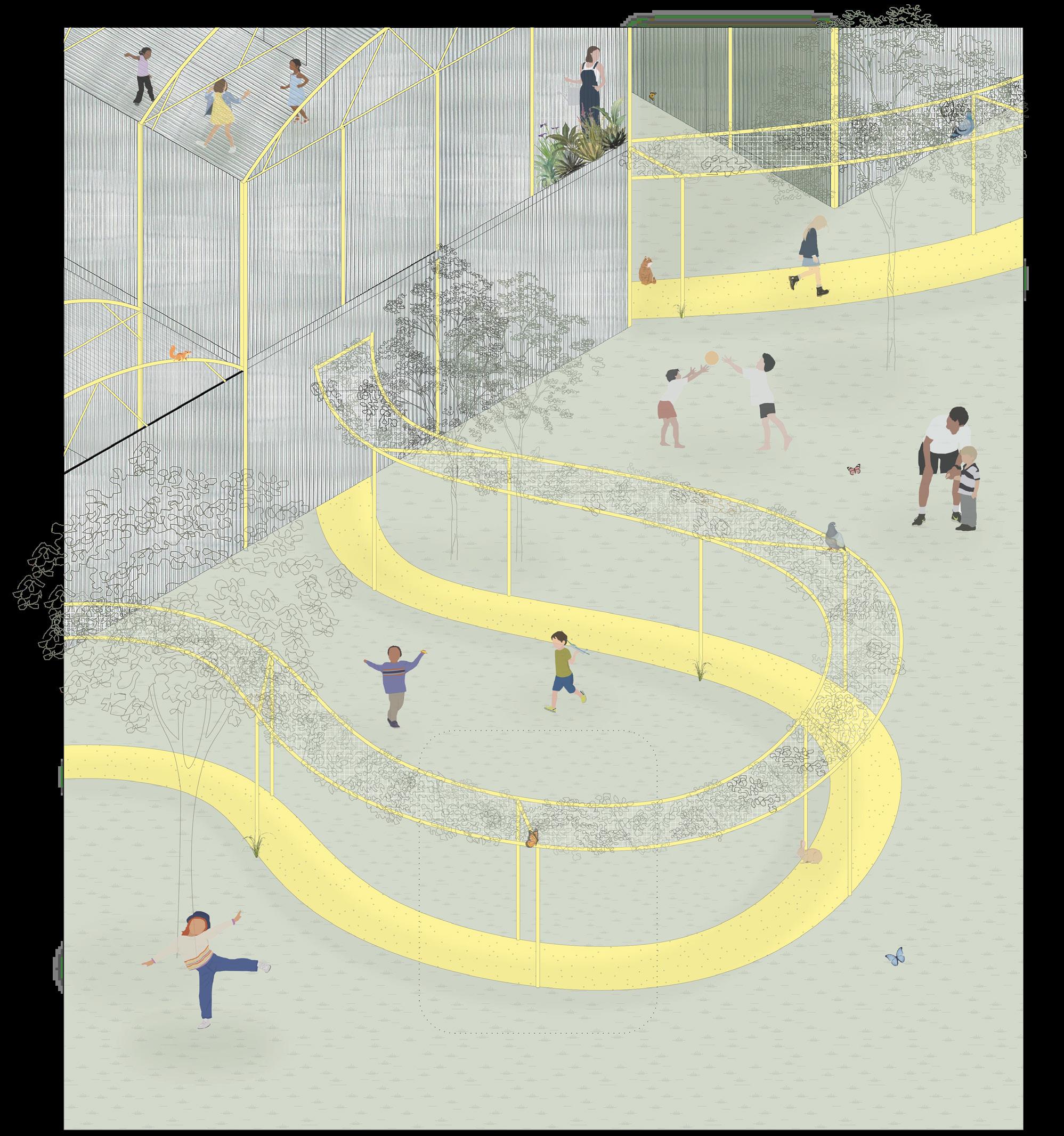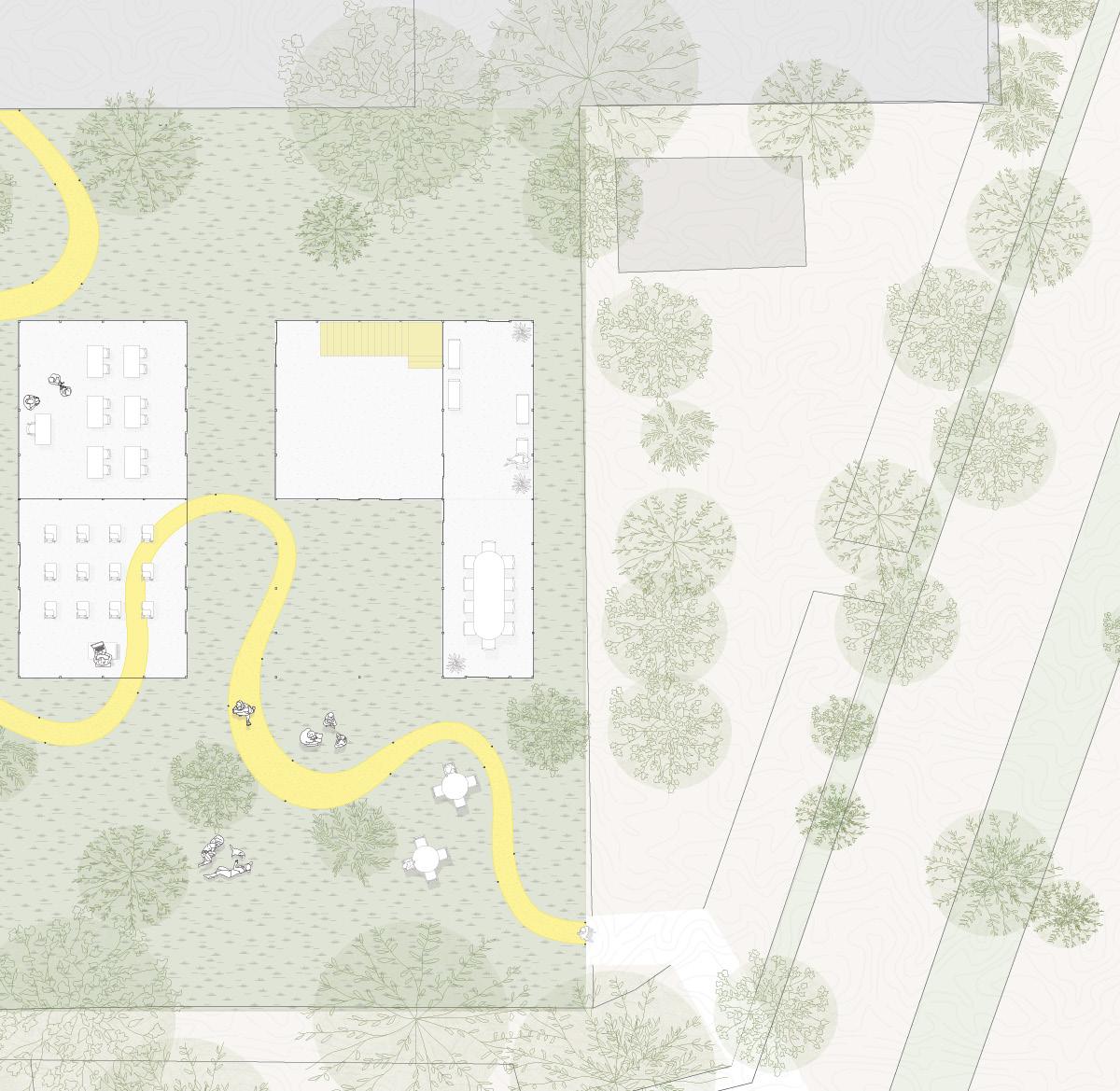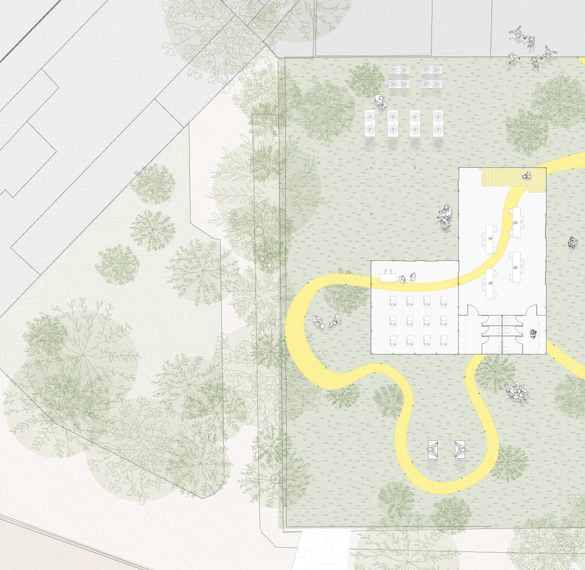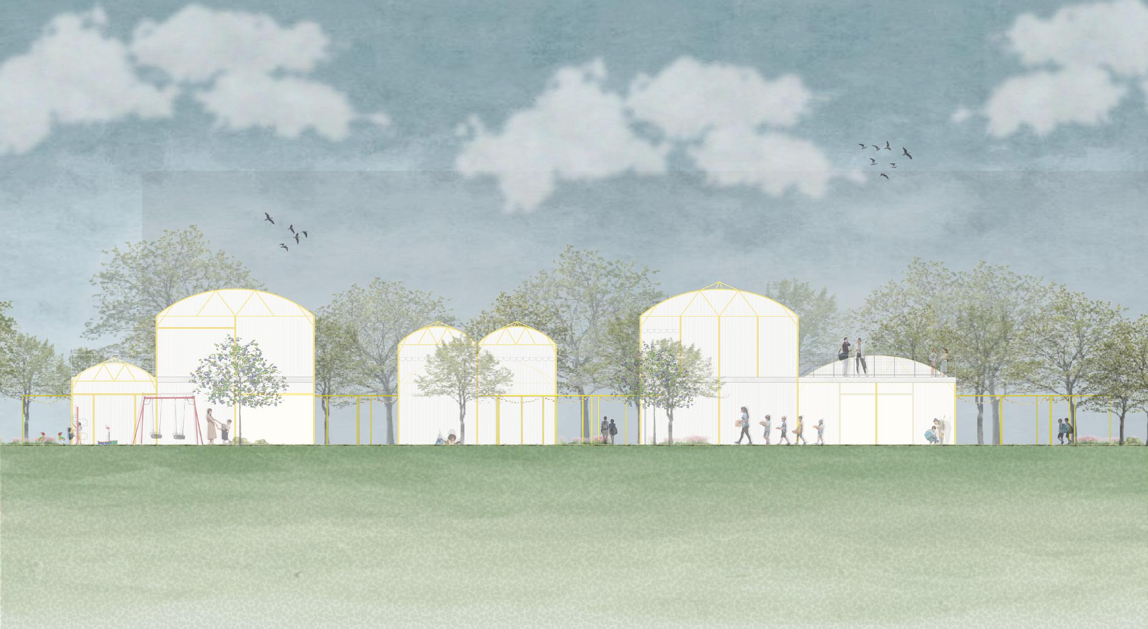 An exploration of organic form and translucency evolved into a study of how students experience space. Through iterative modeling, the focus shifted from the greenhouse as an object to the way it supports learning--how students move through it, gather, pause, and stay connected to the surrounding environment. Polycarbonate plays a key role in shaping this experience. Its diffused transparency allows natural light to fill the classroom while maintaining a sense of privacy, creating spaces that feel open yet protected. Subtle shifts in height and enclosure guide circulation and create moments of intimacy and openness, allowing the greenhouse to function as both a classroom and an immersive connection to nature.
