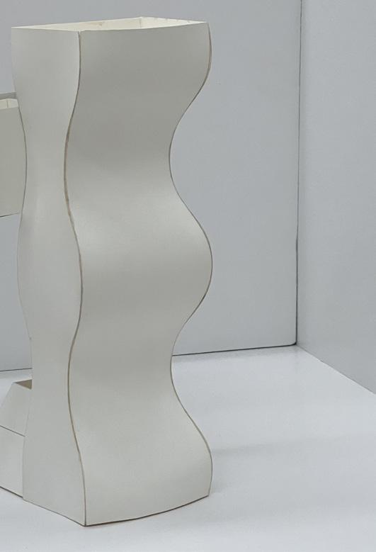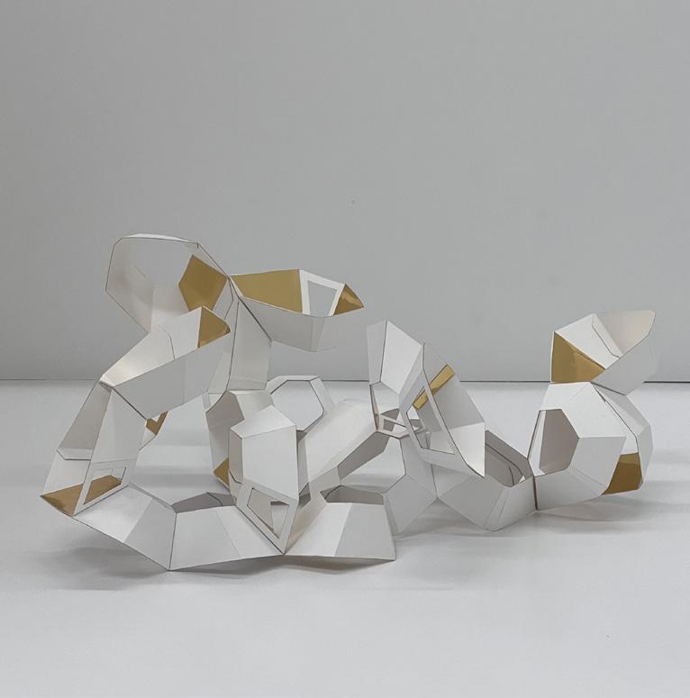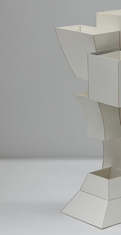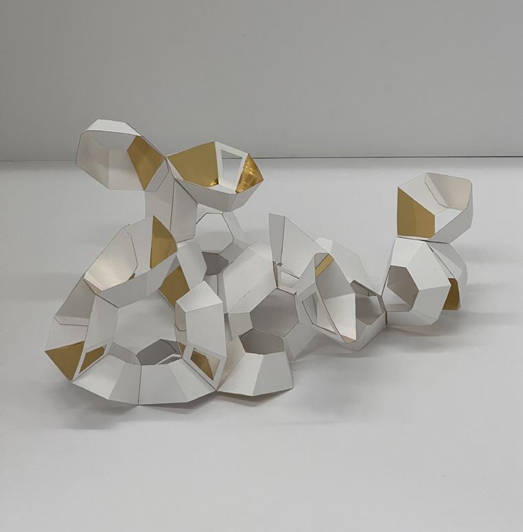 I began with a flat shape, scoring out sections to transform it into a 3D structure. The pieces are assembled by gluing them together, and through repetition, each added layer expands and develop the form.