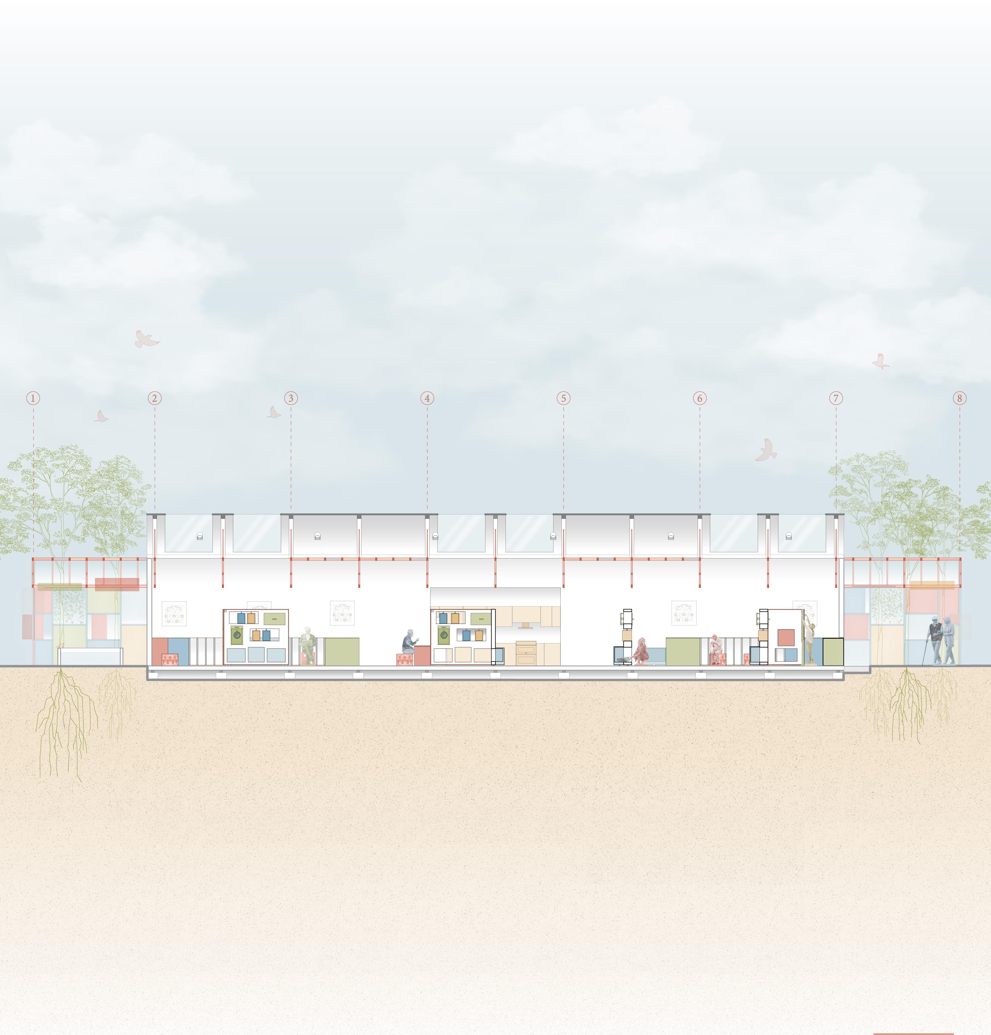 Originally centered on sacred architecture, the design shifted as research into dementia and memory loss reshaped our priorities. The focus moved away from symbolism and toward cognitive and emotional support--considering how sequencing, visibility, and natural light could aid orientation and reduce anxiety. Through iterative plans and sections, circulation was refined to feel intuitive rather than disorienting. Material consistency and gentle transitions create a sense of familiarity and grounding. The final proposal positions architecture not only as a place of gathering, but as a space capable of preserving dignity, supporting memory, and offering moments of calm for vulnerable users.