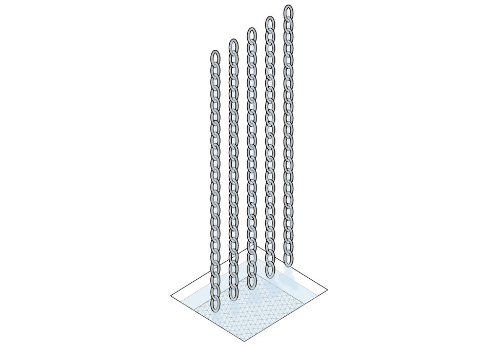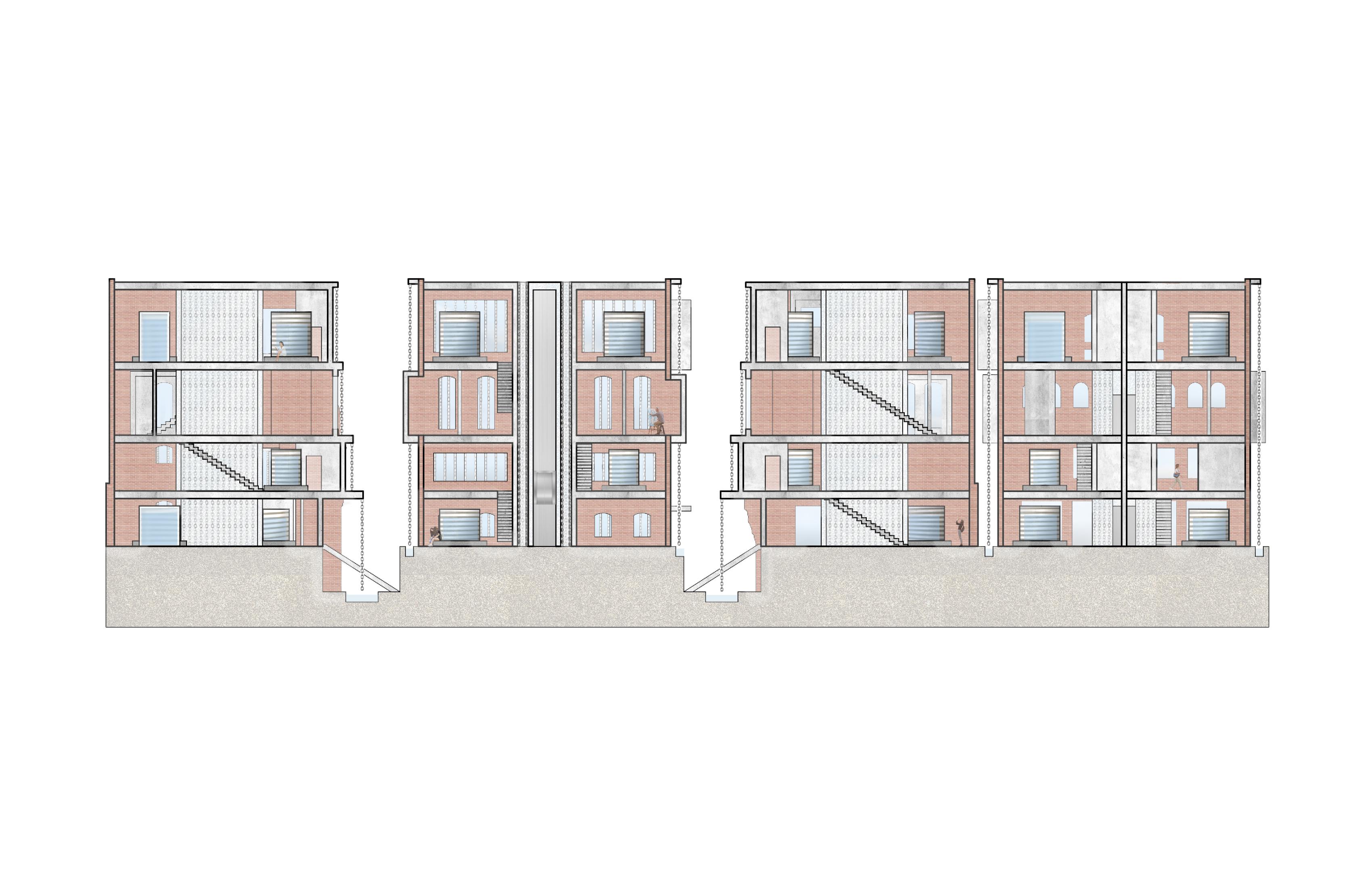 tanks, ensuring a continuous flow that sustains the rain chain even on non-rainy days. During rainfall, the water tank temporarily stops, allowing the rain chain to collect natural rain. Rain chains embellish every wall, except the front, and additional chains surround the elevator inside, providing a visually engaging experience through glass walls. The building functions as a filtration center with a floor dedicated to offices for water management. It also serves as an exhibition space, transforming into an art studio during non-exhibit periods. Additionally, there’s a lounge floor for relaxation. Its sustainability lies in reusing water, transforming it into clean water for various purposes, embodying a fusion of creativity and cleanliness.