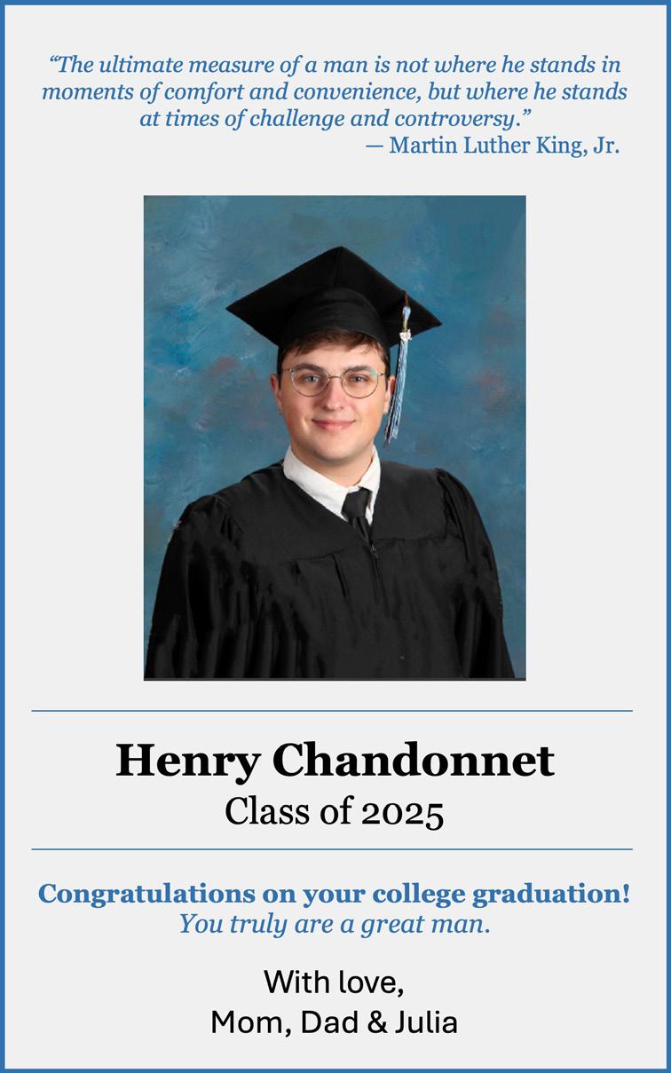 our achievements are only made possible by our incredible leadership. I want to first thank all of the graduating seniors of the Daily — thank you for the work you have put into the Daily, your wisdom and your constant encouragement. Thank you to the executive board — Samantha, Dylan, Odessa, Gretta, Max D., Carmen, Kunal, Aaron, Lia, Rachel, Trey, Jake, Julia, Jaylin, Shea, Aisha, Josh, Evelyn, Grace L., Max A., Grace J., Max L., Matthew, Henry C., Gunnar, Josué, Julieta, Shannon, Max S., Siya, Henry B., Marlee and Arielle. Your passion and commitment are the reasons that this publication can exist. Thank you for being brave this semester and for encouraging bravery in the Daily.