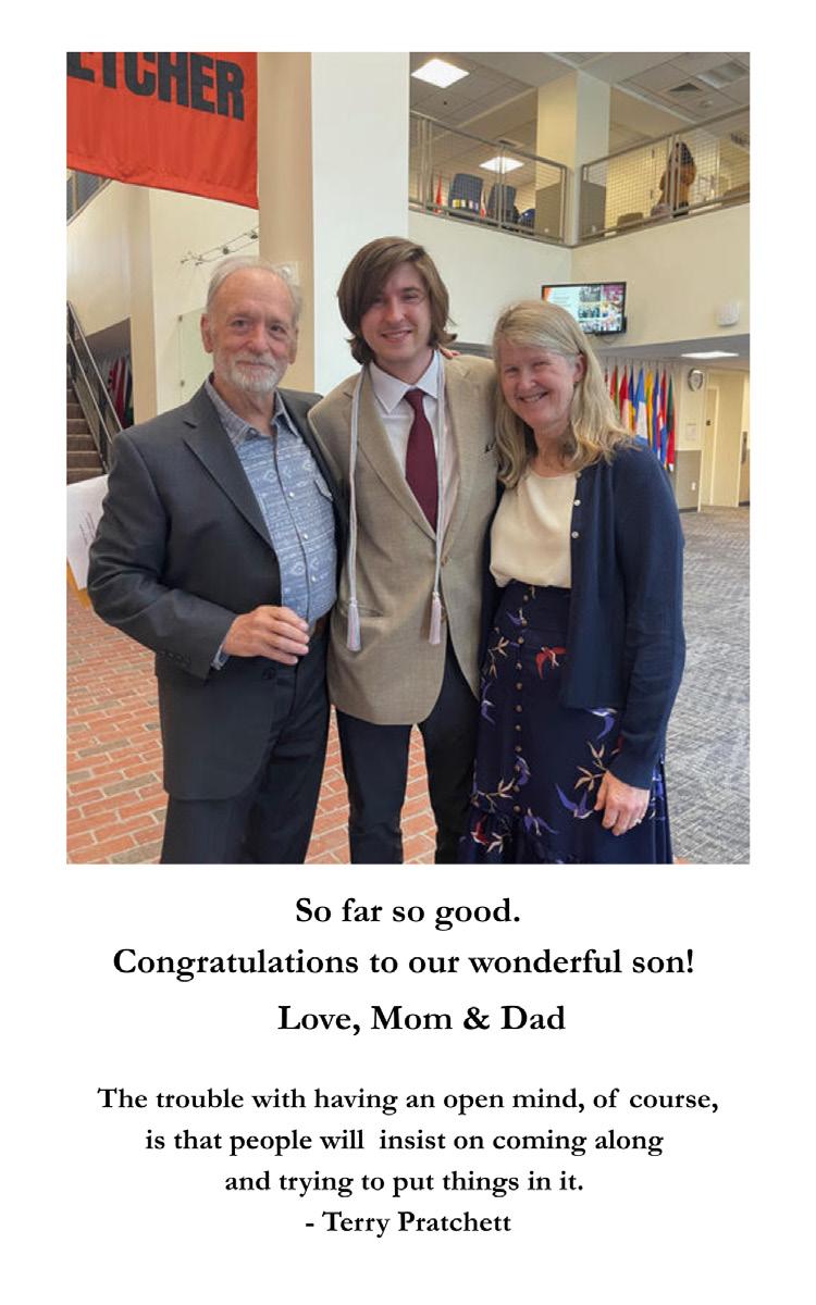 Dear Class of 2025 and the Tufts community, Congratulations on an impressive finish to your undergraduate journey here at Tufts. All of your hard work has culminated in this moment of celebration and accomplishment. Your contributions over the years, in the classroom, on the field and in the studio, have enriched the Tufts community and our collegiate experience. Thank you.