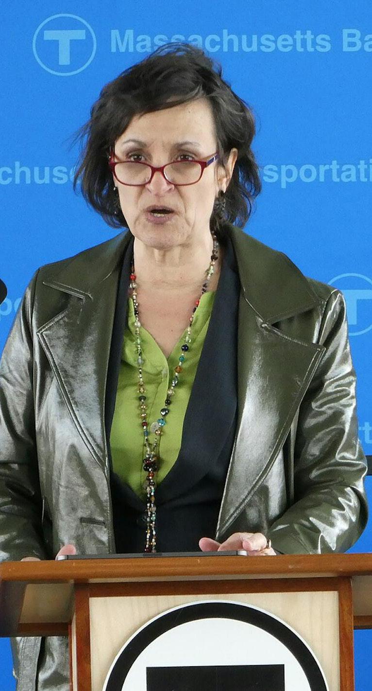 Mayor Ballantyne is pictured speaking at a press conference about the MBTA.