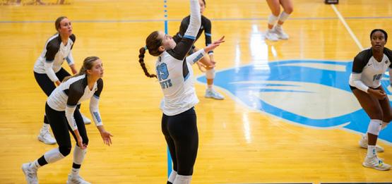 A serving run from first-year outside hitter Amanda Freehill put the Jumbos up 14–9 and forced a Cardinals timeout. Both teams stayed aggressive, taking big swings and putting up strong blocks. A 6–2 run from the Cardinals tied the set at 19–19.