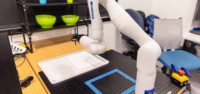 A robot getting ready to draw a photo in Clare Boothe Luce Assistant Professor Elaine Short’s Assistive Agent Behavior and Learning Lab