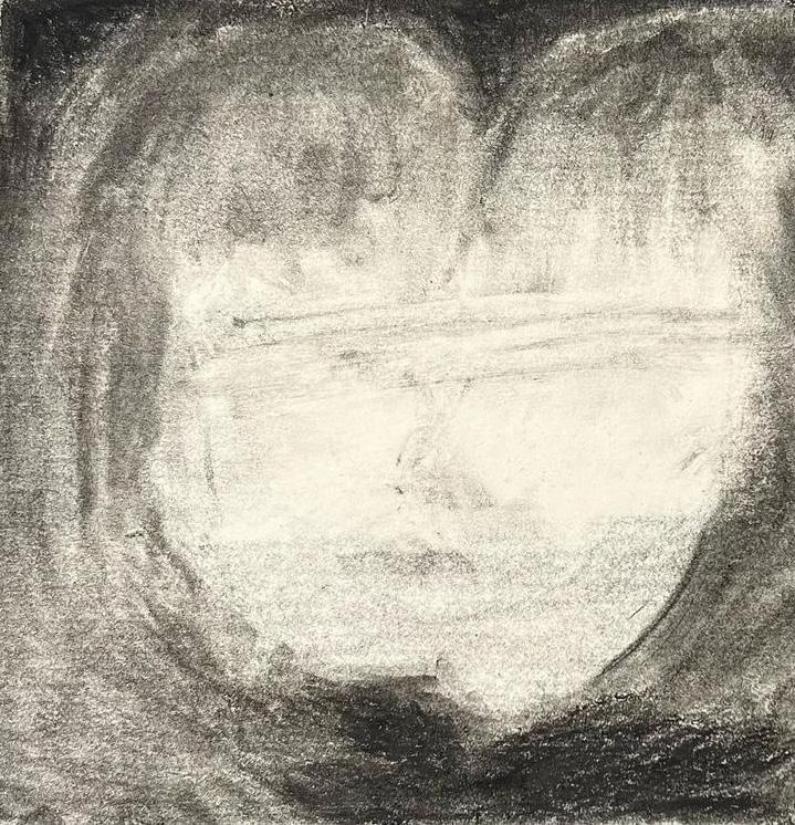 “I… um…” She hastily tried to wipe her hands together, dusting Grandpa off into the dirt, but he was already stained into her fingerprints. As June was doing so, she realized that ash residue covered her dad’s fingertips too, whitening the tips of his nails. She met his gaze, and he looked back at her emptily, like all of him had been vacuumed right from his chest. The white soot of Grandpa lodged into the soles of his shoes as he walked carefully towards her. June looked away and rubbed the edge of her eye with the back of her wrist. She left ash on her face, pressed into the crevice of her eyelid. Tears continued to fall, hot and coagulating with the residue of Grandpa.