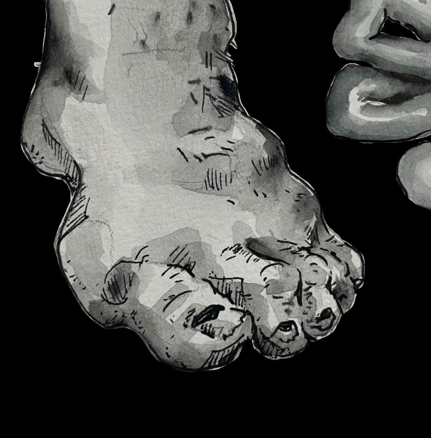 There’s a lukewarm glass of milk on the table. There are your fingerprint smudges on the cup. I can count the creases of your skin, pressed in sweat. Take me by my hand, would you? Smile at me. Tug at my hair. Grimy bugs wriggle through our fingers, dirt caked under our nails. I wanna drink your blood. I’ll gnaw on your bones. Hug me. Hold me. I’m voracious, you know? Plunge me into the sea, that’s alright. Drag me down under. Flush me out with saline, like tears running down my knees. Salt caking, cracking, sticky in my palms. I’m bleeding—all my guts are spilling out.