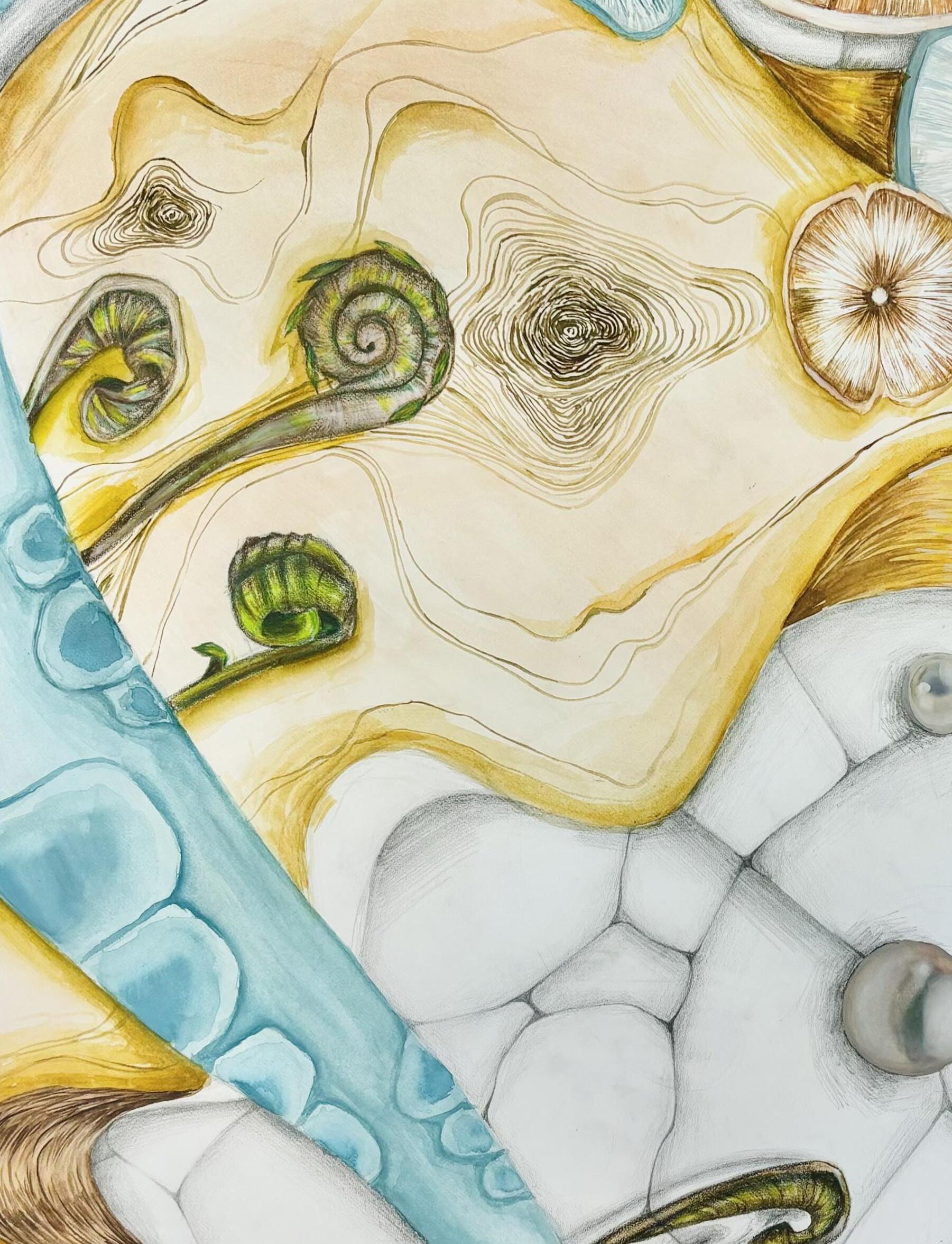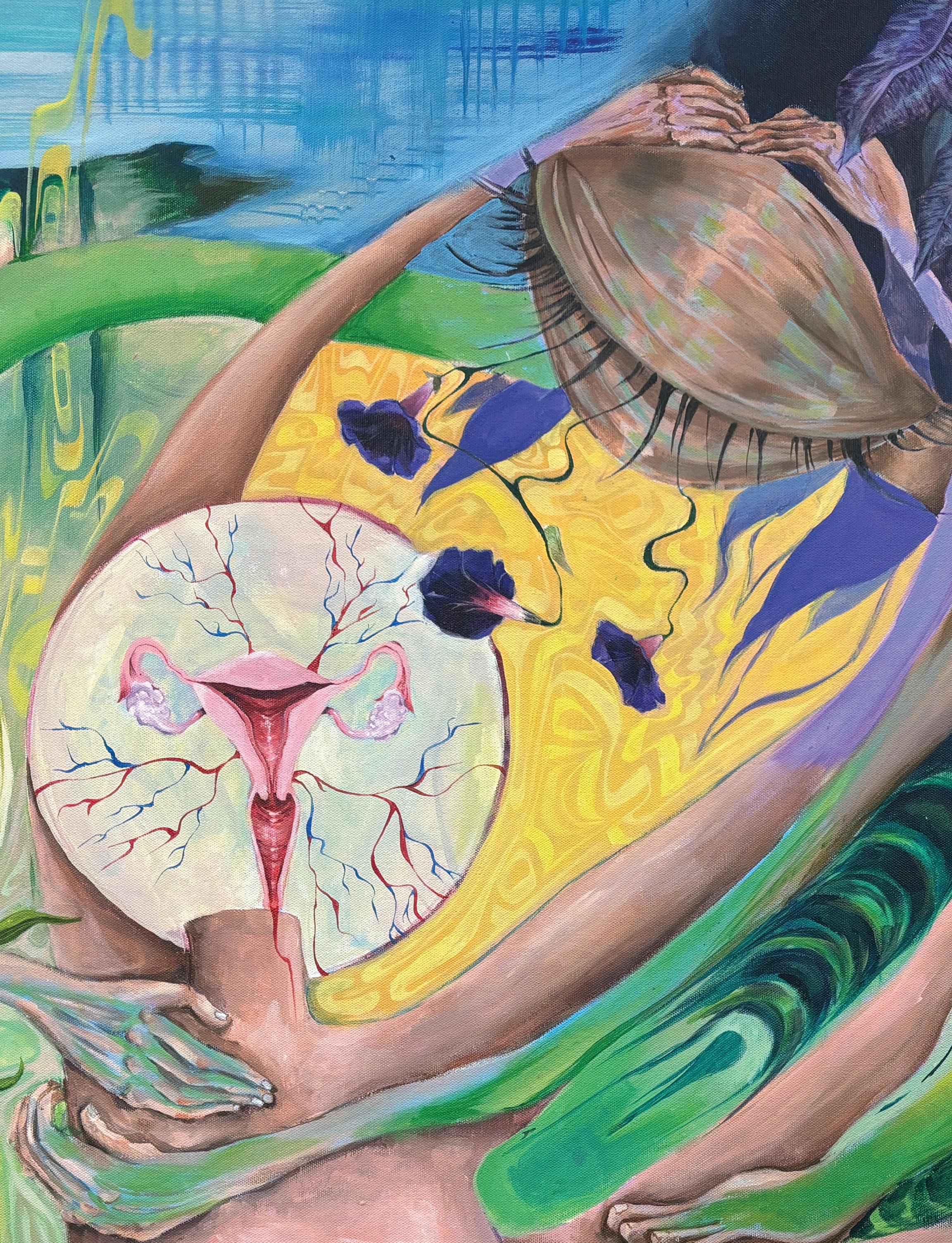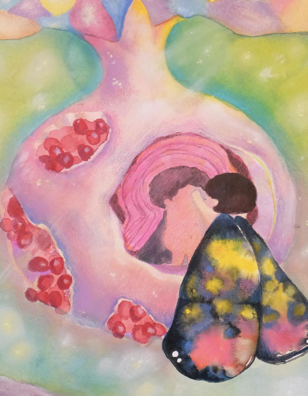 My womb was last to go. It resisted the acid’s bite, a sac of luminous light drifting through the stomach’s walls, drawn upward by something I could not yet name— even as my ribs began to spread open like a moonflower’s petals, even as my spine softened, even as I was just a skeleton in Zeus’ stomach.