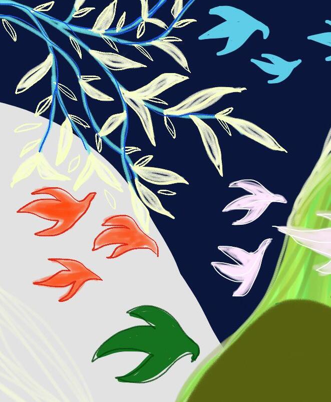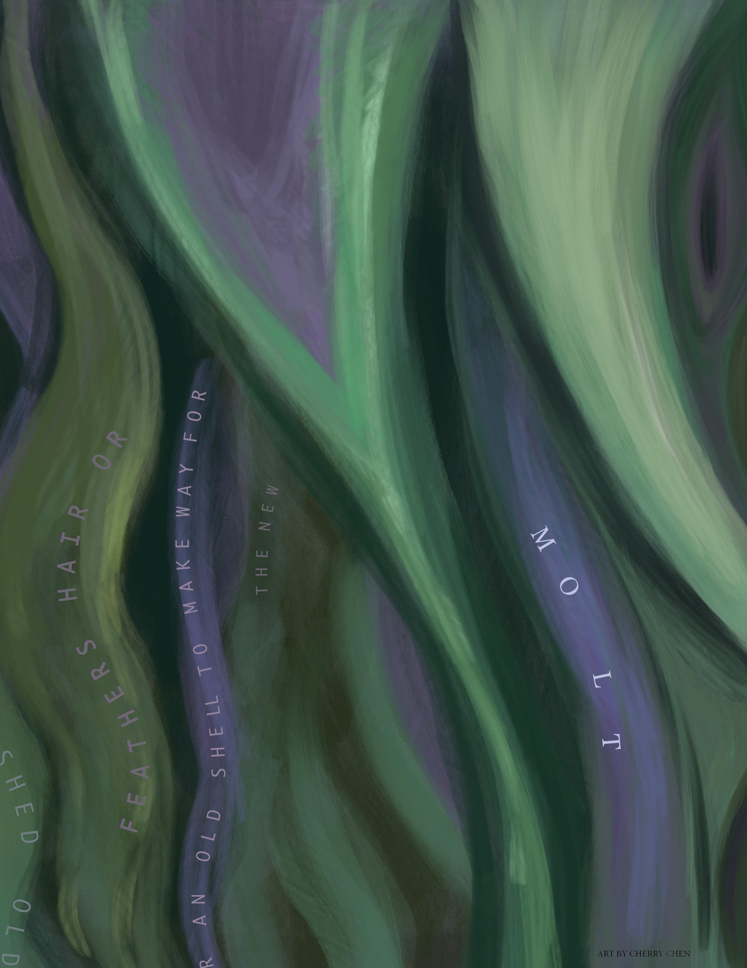 Perched on an edge folding into itself, me and you, we’re alone and yet, no amount of vastness can collapse this distance between you and I. It is dawn, hues of fluorescent foliage fleeing the sky, but next to it, the day has also dawned into evening; beaded freckles and stardust carving out the deep blue darkness. I am back home, where I first grew up, when I first learned my ABCs, and when I first witnessed the universe from above take flight and my spirit along with it—we were always troubled children.