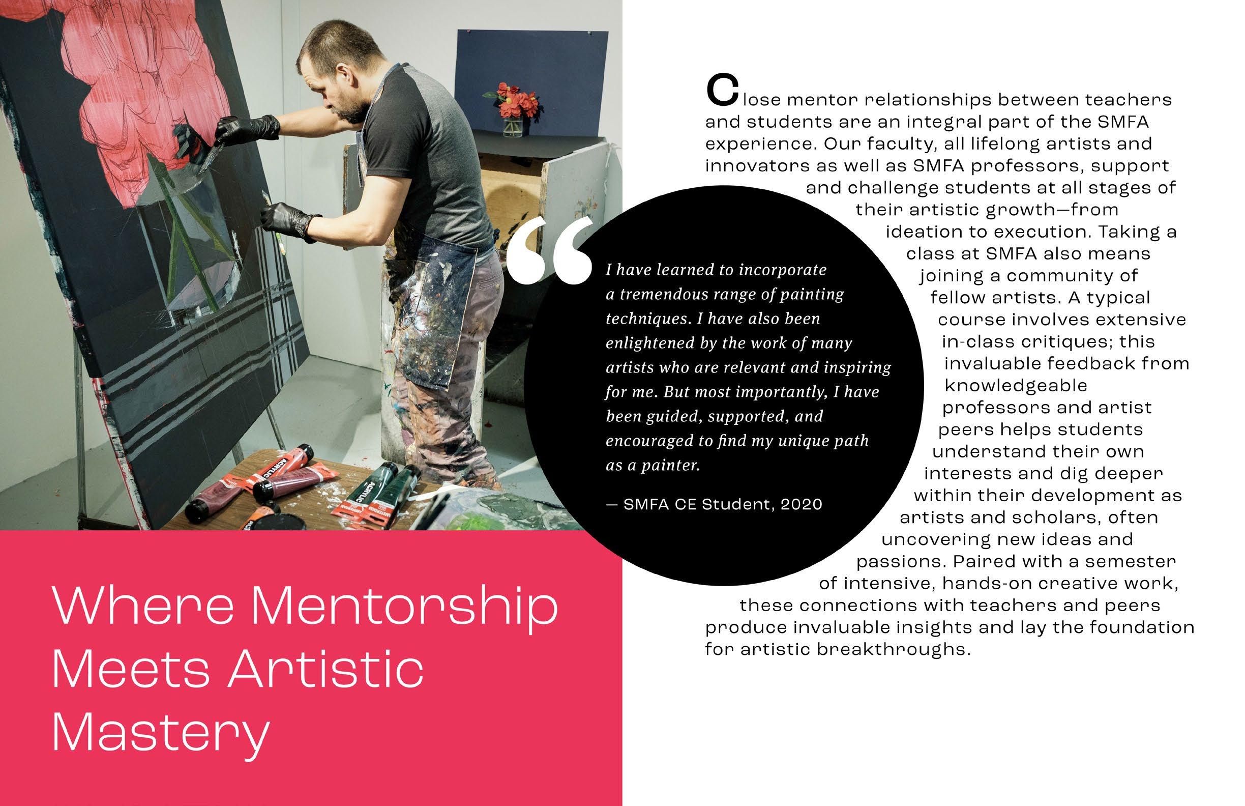 With SMFA's rich connections to a top research university and a major art museum, today's students are uniquely poised to make a cultural and artistic impact.