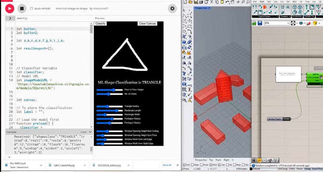 // Setting up the Slider information that would be imported into gh script resultexport.shapeclass=’abcd’; // Shape Classification resultexport.trirad = 2; // Triangle Radius