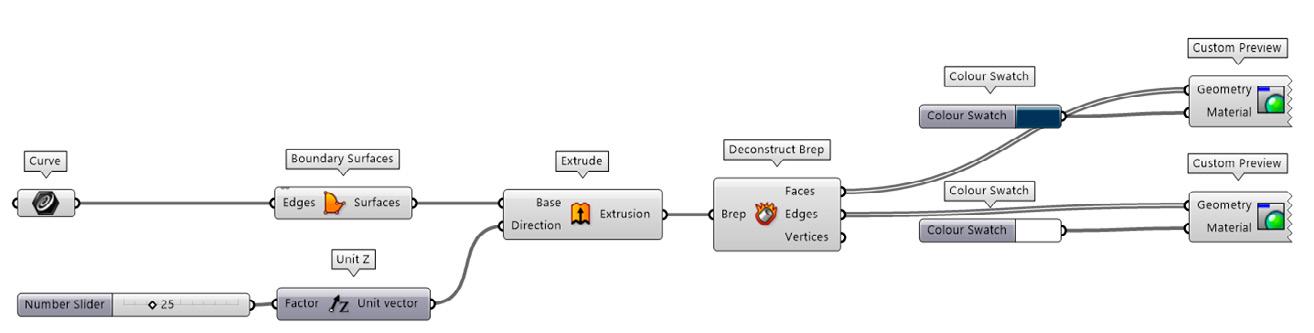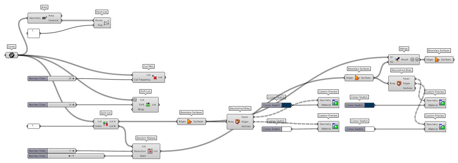 Later on, re-arranged the script and connected everything together using hops component in grasshopper