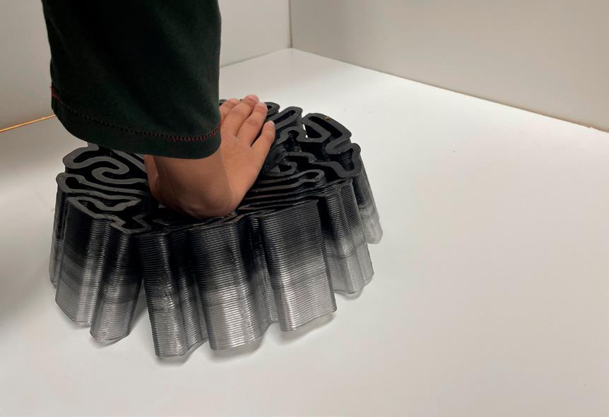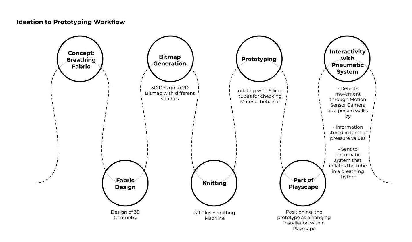 Summary: The idea is to look at material prototyping and fabrication through the lens of a human-centered design approach. Various observations and studies were conducted at an Autism Therapy Centre and a high school for Neuro Diverse Children which were the juxtaposed with textile knitting and pneumatic inflatable system explorations