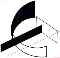 The vertical and horizontal planes penetrate the curve at different levels.