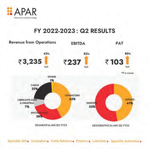 In the ‘Transmission & Distribution (T&D)' segment, the company has secured orders for T&D and cabling projects in India, the Middle East, and Africa. In India, the business has won a 400kV transmission line order from the Power Grid Corporation of India Ltd. (PGCIL) and 132kV underground cabling order from a state utility. Internationally, the company has secured the 220kV transmission line and tower supply ordersintheMiddleEast,securedbytheUAEsubsidiaryand the330kVtransmissionlineorderinAfrica.