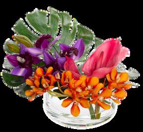 8"HX15"WX17"L ORCHID/ANTHURIUM/LEAF IN GLASS