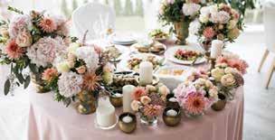 Obok naturalności pojawi się też trend na głębokie, nasycone barwy. Burgund, śliwka, granat czy butelkowa zieleń w połączeniu ze złotem stworzą elegancką, wieczorową oprawę. To idealne rozwiązanie dla wesel w stylu glamour i industrialnym. Coraz częściej zobaczymy także monochromatyczne aranżacje – cała sala utrzymana w jednej tonacji, przełamana kontrastową florystyką lub światłem. v