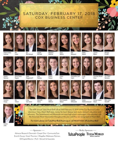 The 47th annual Tulsa Heart Ball will be held February 17, 2018 at the Cox Business Center downtown Tulsa. Heart Ball raises money for heart disease and stroke research, education and advocacy. The Sweethearts and Mavericks are area high school sophomores who volunteer with the American Heart Association throughout the year and they are recognized at Heart Ball. For tickets please visit TulsaHeartBall.Heart.org or call 918.877.8364. #TulsaHeartBall Patrick Zetik