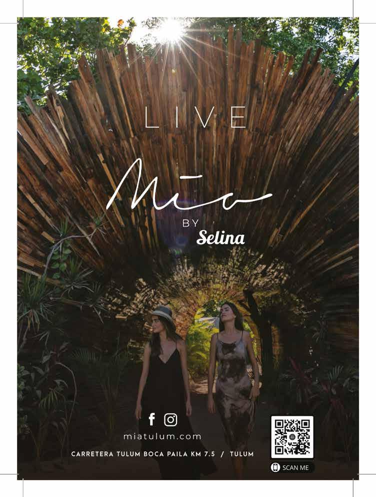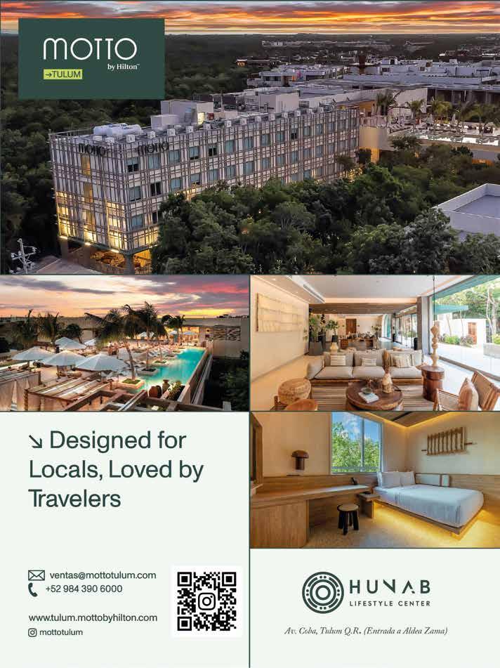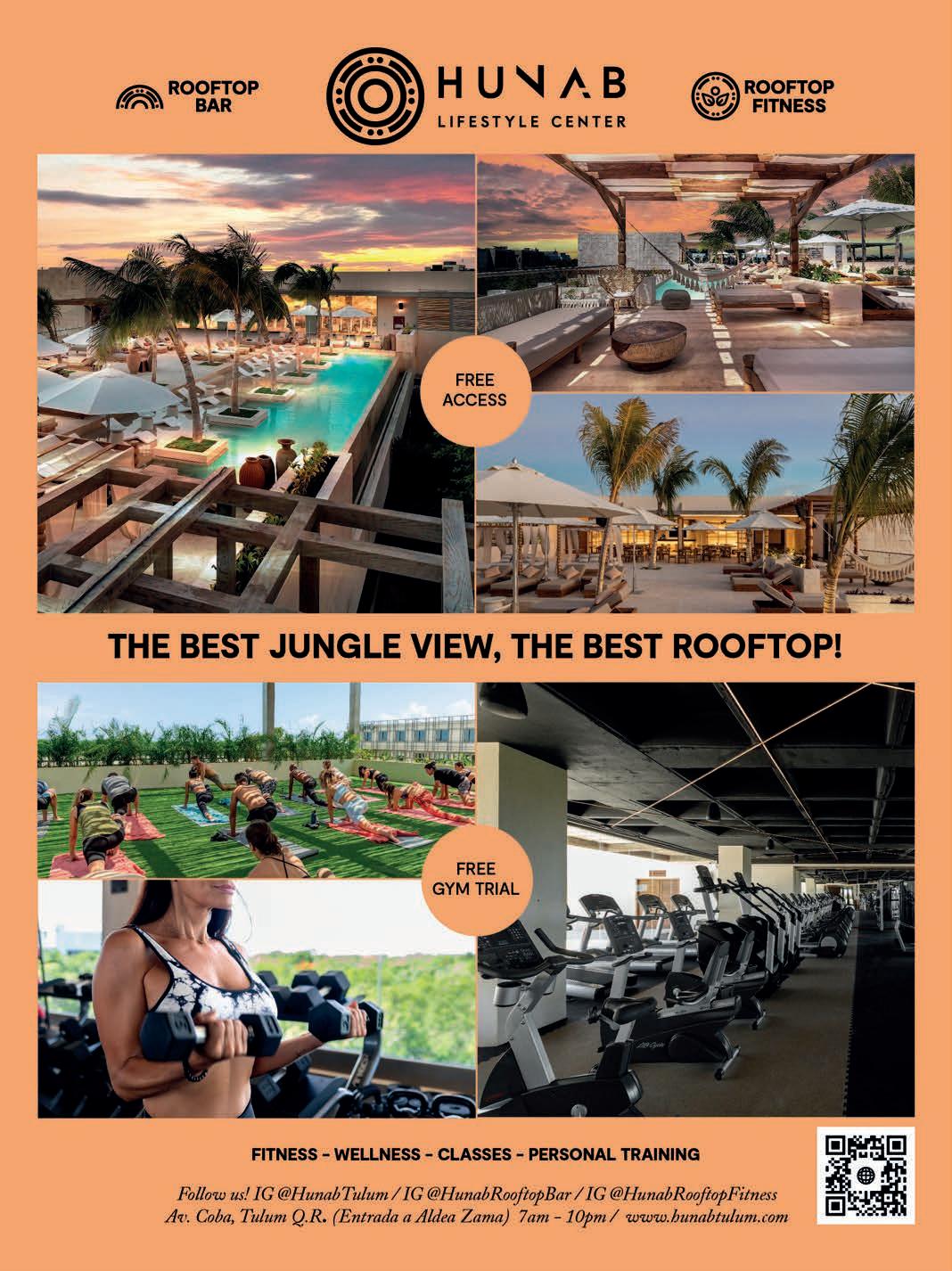 HUNAB LIFESTYLE CENTER page 62 HOTEL MOTTO TOP CENOTES TO ENJOY page 60 Dive into the magical water ISSUE #1 2023 FEATURED FOOD EVENTS LISTING TOP RESTAURANTS TULUM TIME