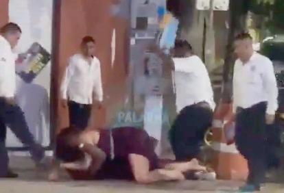 ya circula en redes se puede apreciar como cuatro sujetos le propinaron patadas al hombre que está en el suelo,mientraslamujer queleacompañagritae intenta protegerlo con su cuerpo. No conformes con eso, los taxistasagarranobjetos a su alrededor para golpearalapareja. Hasta el cierre de este informe, los agresores no han sido identifica-