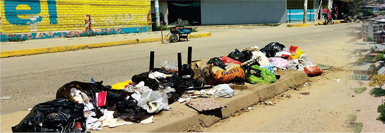 Desde muy tempranas horas del día hasta la nocheseapreciaelmal estado de los sardineles donde la población suele acumular sus restos sólidos a espera del camión recolector durante el horario establecido que solo