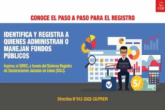 La ley N° 31419, “Ley que establece disposiciones para garantizar la idoneidad en el acceso y ejercicio de la función pública de funcionarios y directivos de libre designación y remoción”, dispone que la Contraloría sea el ente encargado de emitir disposiciones para identi car quiénes son los funcionarios o servidores públicos encargados de administrar o manejar los fondos del Estado en los tres niveles de gobierno.
