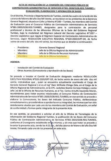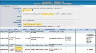 La scal Erika Solís Casto, quien rma el o cio fechado el 01 de agosto, brindó un plazo de cinco días hábiles para que el Gobierno regional remita la siguiente documentación: las actas levantadas por el Comité de Evaluación con relación al cargo de Abogados Procuraduría Pública Regional.