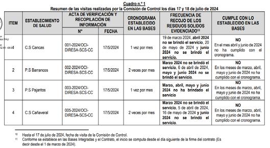 A todo eso se suma que en “los establecimientos de salud de “Cancas”, “Barrancos”, “Pajaritos” y “Trigal”, no cuentan con un responsable designado para la gestión integral y manejo de residuos sólidos”. Esto provocaría el riesgo de no ejecutar los procedimientos técnicos adecuados en la materia, lo que podría conllevar a la afectación de la salud de trabajadores y usuarios en general.